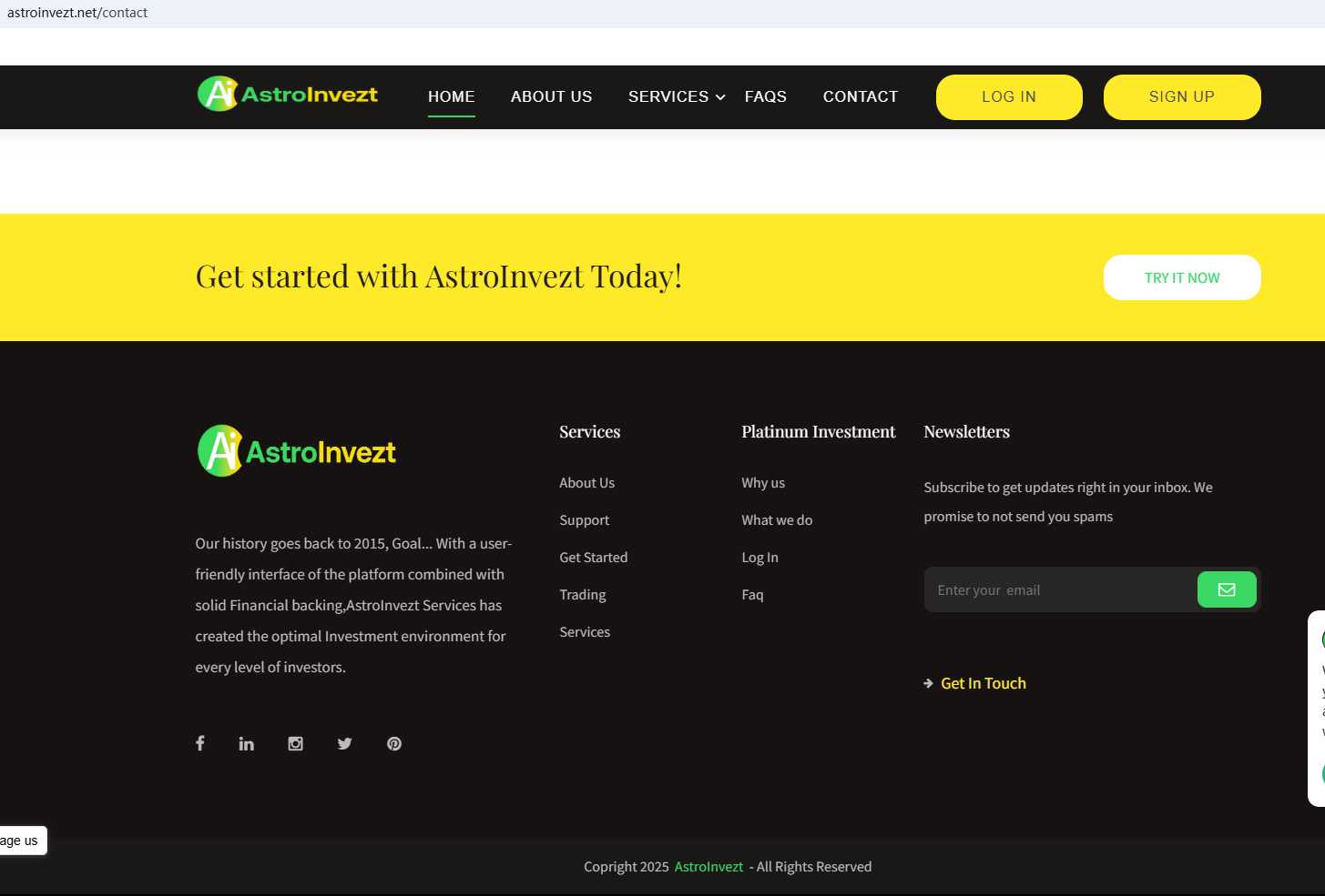 في جوهرها ، لا يتم تنظيم AstroInvezt من قبل أي هيئة حاكمة. إن تكليفها بأموال المستثمرين أمر محفوف بالمخاطر للغاية ، حيث لا توجد حماية قانونية لحماية الأموال. يبدو أن AstroInvezt عملية احتيال.