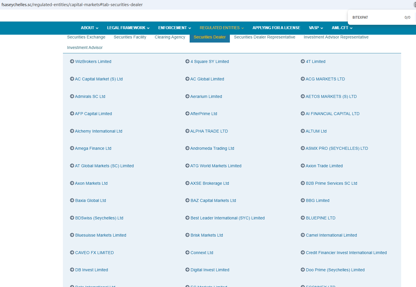 يستخدم موقع الويب نموذجا شائعا لمواقع الاحتيال التي تم وضع علامة عليها بواسطة Brokersview من قبل ، على سبيل المثال ، إشارة Xm. حتى أنهم يزعمون نفس الرقم التنظيمي ، ومن الواضح أنهم قاموا على عجل ببناء موقع ويب للاحتيال على المستثمرين من أموالهم. عند التحقيق ، وجدنا أن الوسيط الموجود في ملف لدى هيئة الخدمات المالية في سانت فنسنت وجزر غرينادين (SVG FSA) ليس إشارة Xm ، ولم يتم العثور على معلومات مطابقة في هيئة الخدمات المالية في سيشيل (Seychelles FSA). بالإضافة إلى ذلك ، أصدرت اللجنة الوطنية لسوق الأوراق المالية (CNMV) تحذيرا ضد BITEXPAT ، معتقدة أن هذه الشركة قد تقدم خدمات أو منتجات مالية دون إذن مناسب.