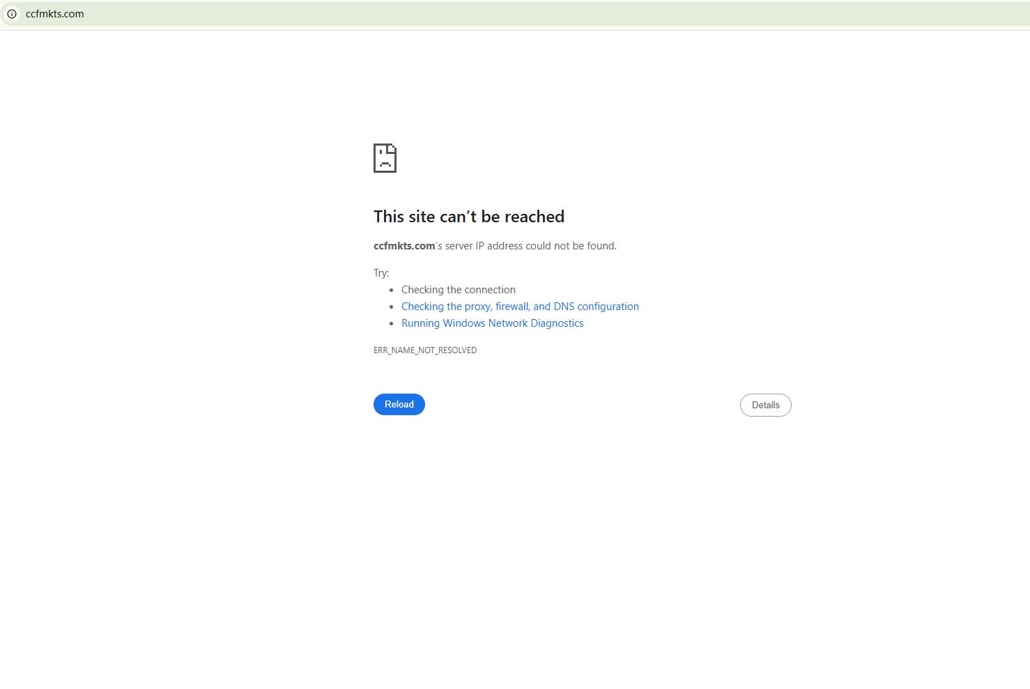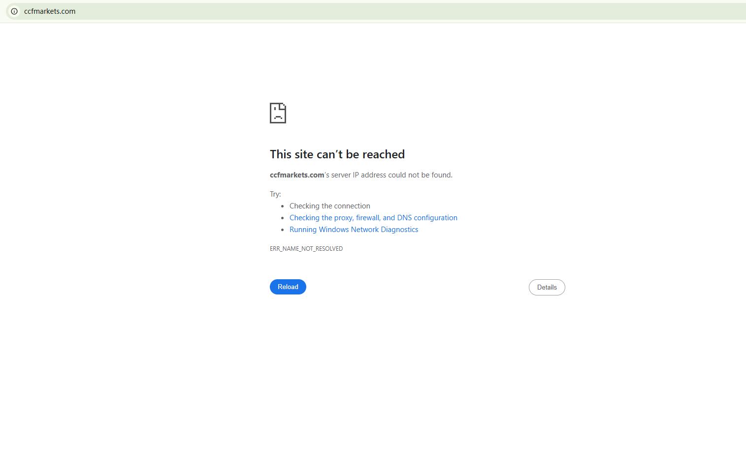 وجد موقع BrokersView أن النطاقين "https://ccfmarkets.com/" و"http://ccfmkts.com/" غير متاحين حاليًا. ويُعتبر هذا مؤشرًا خطيرًا، إذ غالبًا ما يشير تعليق موقع وسيط إلى وجود مشكلات تنظيمية أو تشغيلية كامنة.