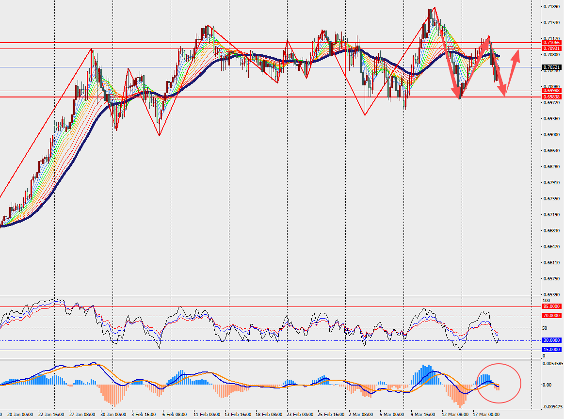 第一阻力位:0.7100 第一支撑位:0.7010