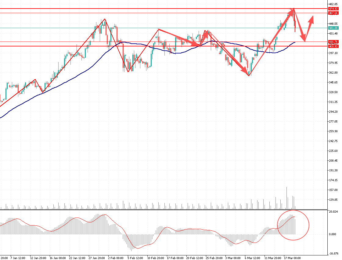 第一阻力位:462.00 第一支撑位:417.00