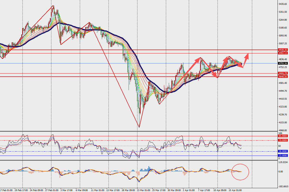 第一阻力位:4810.00 第一支撑位:4775.00
