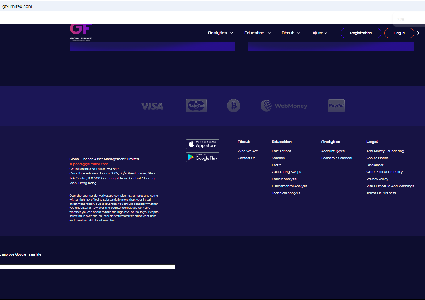 وفقا لموقعها على الإنترنت ، فهي مسجلة في هونغ كونغ. بعد التحقق من لجنة الأوراق المالية والعقود الآجلة (HK SFC) ، وجد أنها مسجلة بالفعل. ومع ذلك ، تجدر الإشارة إلى أنه لممارسة حقوق الصرف الأجنبي ، يجب أن يشير التسجيل لدى SFC إلى أن الوسيط مخول بتقديم خدمات مالية "تداول العملات الأجنبية بالرافعة المالية". ومع ذلك ، لم نعثر على هذه الفئة بعد مراجعة الصفحة بعناية.
