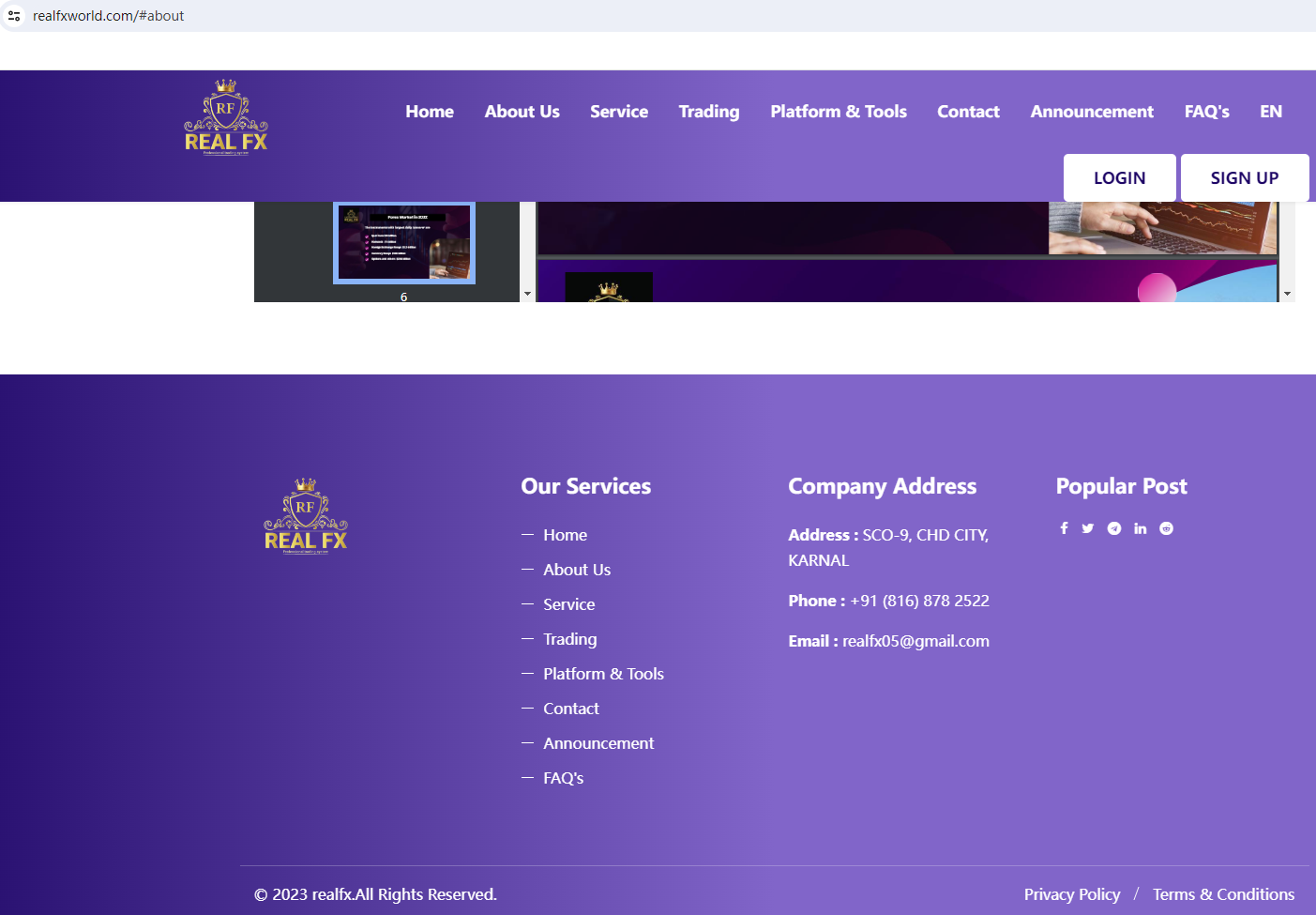 يُعلن الموقع أنه يُقدم تداول العملات الأجنبية والأسهم والسلع والعملات المشفرة، ولكنه غير مُرخص أو مُرخص من أي هيئة تنظيمية مالية. يقع الموقع في كارنال، الهند، ولكن لا توجد هيئة مُحددة في الهند تُنظم تداول العملات الأجنبية، لذا فهو غير قانوني، لذا يُرجى عدم إيداع الأموال فيه.الحقيقة هي أن شركة Real FX لا تخضع لرقابة أي جهة تنظيمية مختصة بتداول العملات الأجنبية (الفوركس). أموال المستثمرين في هذا الوسيط غير آمنة، ولا يمكن حمايتها بأي قانون. لذلك، فإن Real FX عبارة عن عملية احتيال.