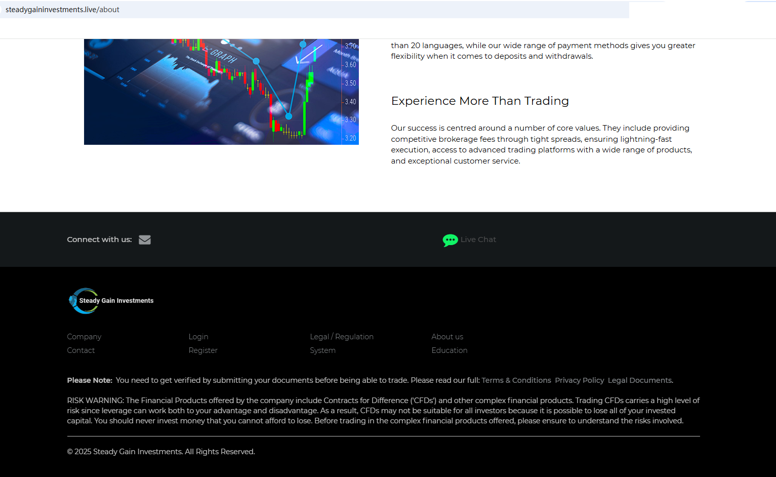 بالإضافة إلى ذلك، أصدرت هيئة السلوك المالي (FCA) تحذيراً بشأن شركة "ستيدي غين إنفستمنتس"، لاعتقادها بأنها قد تقدم خدمات أو منتجات مالية دون ترخيص رسمي في المملكة المتحدة.