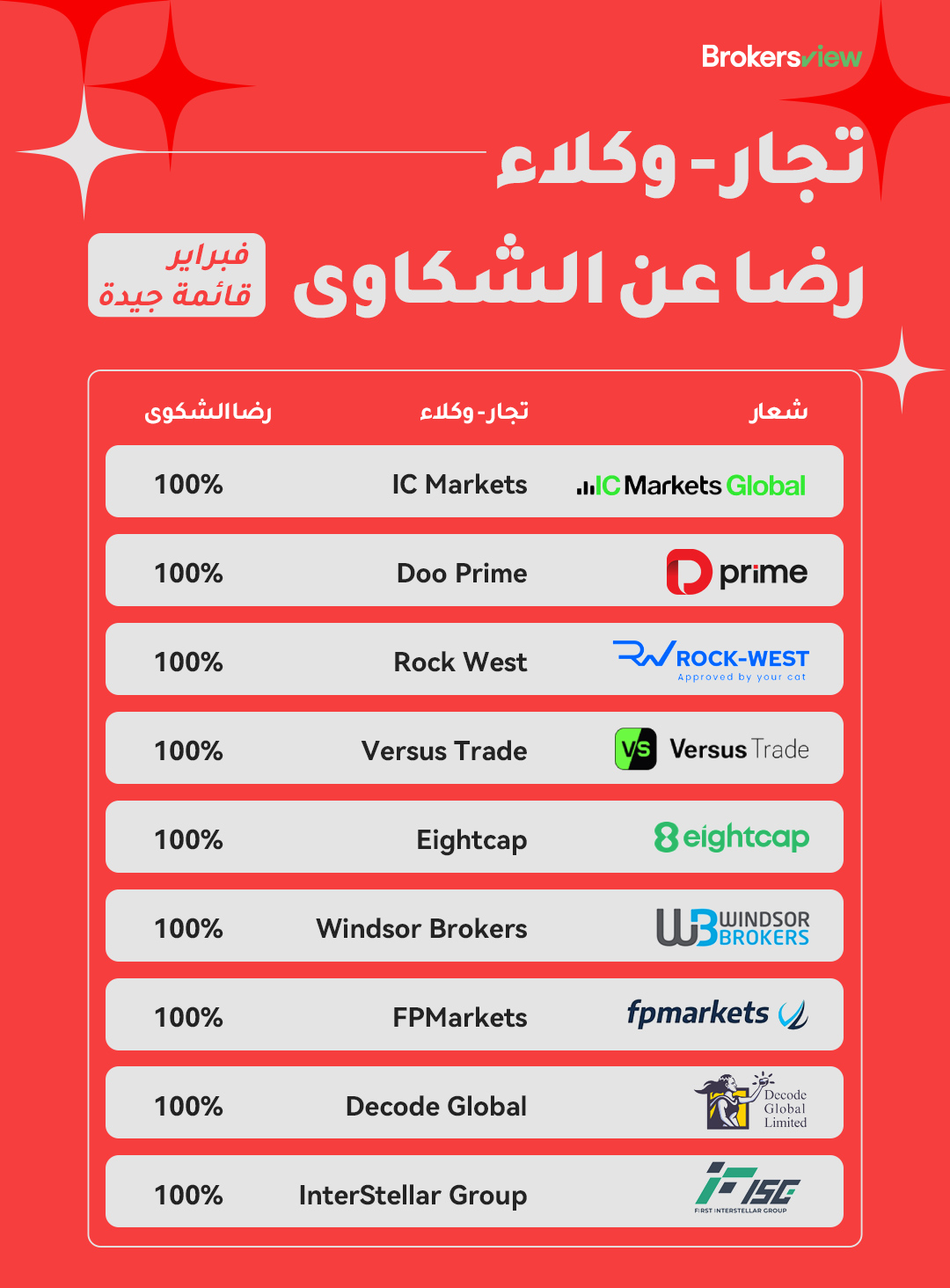 يميل معظم المستثمرين، وخاصة المبتدئين، إلى إغفال مستوى خدمة الوسطاء عند اختيار منصة التداول. مع ذلك، فإن طريقة تعامل الوسيط مع عملائه تؤثر بشكل كبير على تجربة التداول ككل. لذا، ولمساعدة المستثمرين على اتخاذ قرارات مدروسة، تُحدّث BrokersView قائمة الوسطاء شهريًا وتصنفهم بناءً على مدى رضاهم عن معالجة الشكاوى. هدفنا هو تقديم نصائح مرجعية مفيدة حول ما إذا كان الوسطاء يُقدّرون آراء العملاء ومستوى خدمة العملاء الذي يقدمونه.