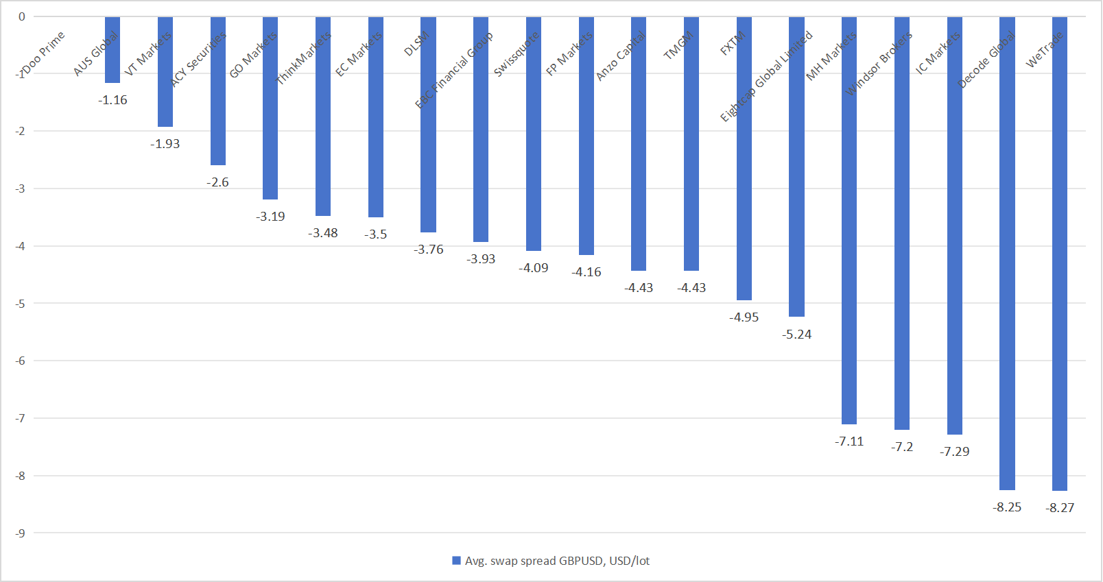 مرة أخرى، تتفوق منصة Doo Prime برسومها الصفرية على مقايضة الجنيه الإسترليني مقابل الدولار الأمريكي، مما يمنح المتداولين على المدى القصير والطويل ميزة قوية. في المقابل، تفرض منصتا WeTrade وDecode Global رسومًا باهظة على التداول الليلي، مما يؤثر سلبًا على الربحية بشكل ملحوظ.