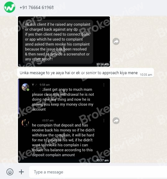 2. الابتزاز : أبلغ المستثمر عن تلقيه محاولات ابتزاز من أحد الأفراد المرتبطين بـ Tradewill عبر الهاتف وواتساب. استخدم هذا الشخص، المسمى أمان ورقم الهاتف +91 7666461968، أساليب مختلفة لتهديد المستثمر وابتزازه، مما زاد من تفاقم محنته.