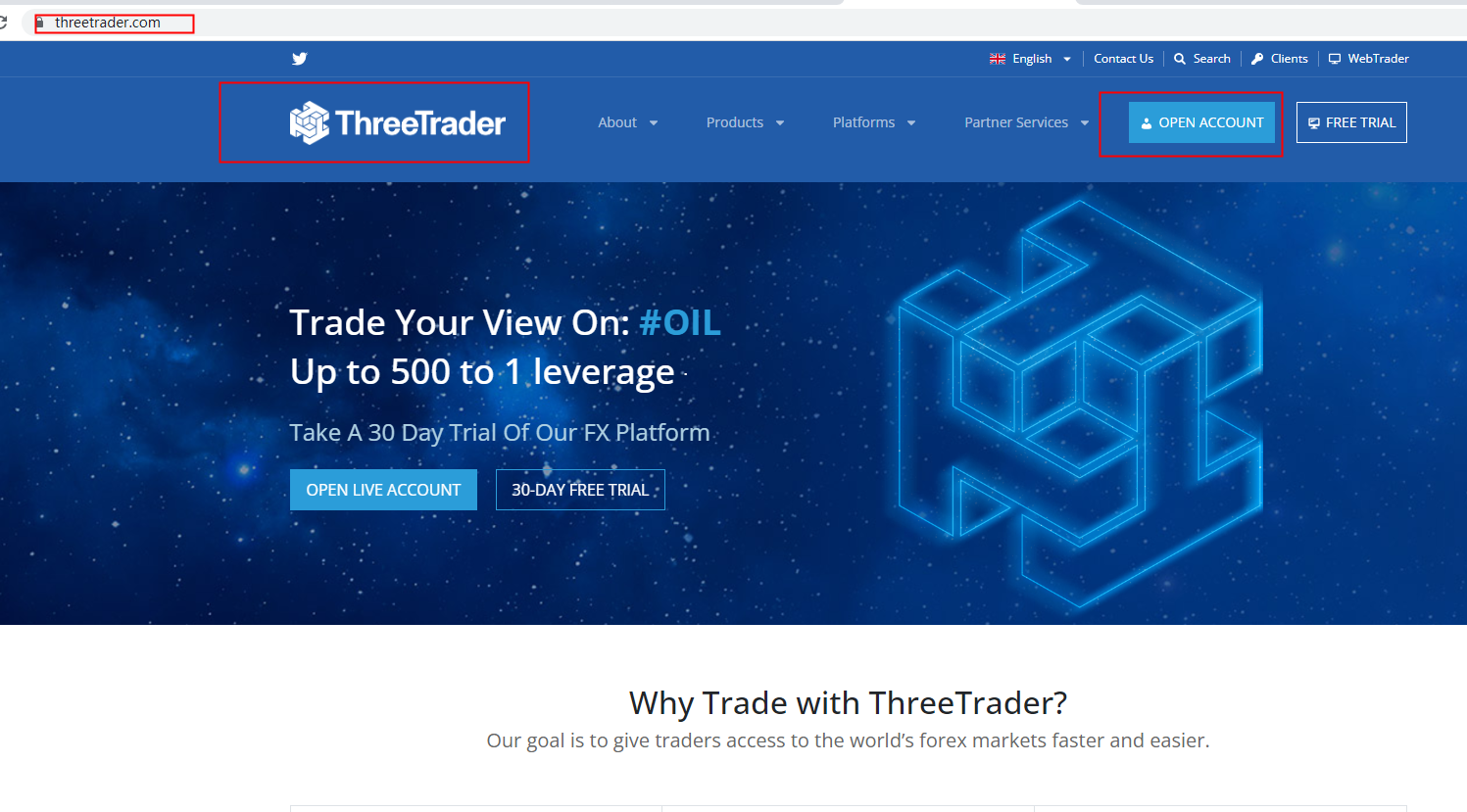 If you want to open an account with ThreeTrader, at the top right corner of their homepage is a link for you to sign up. The screenshot below shows where the button is. As for how to trade with ThreeTrader, we would recommend contacting their customer service for the answer. For more details about this broker, please refer to our full review of ThreeTrader.