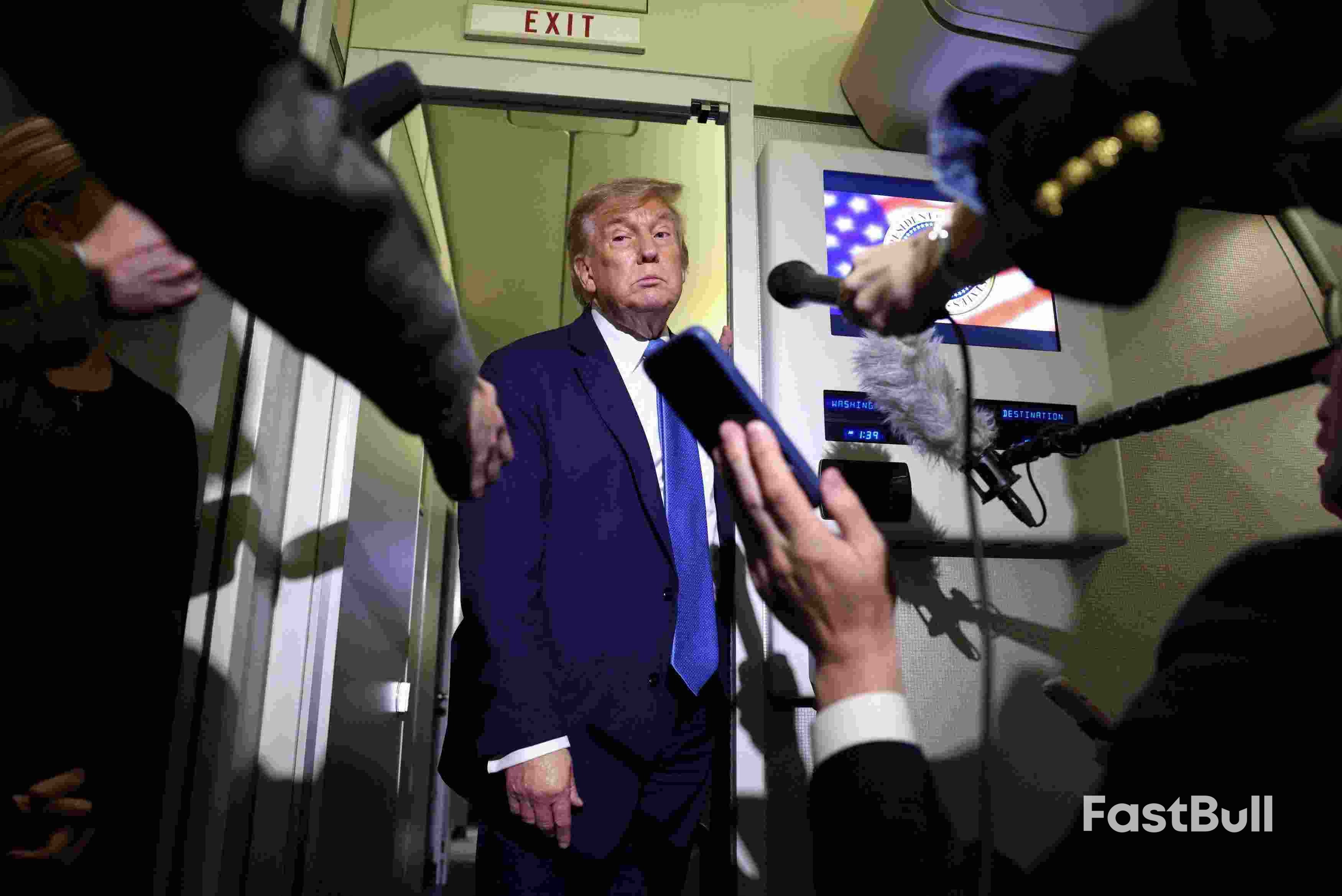 الرئيس الأمريكي دونالد ترامب يتحدث للصحفيين على متن الطائرة الرئاسية بعد مغادرته مبكرا قمة مجموعة السبع في كندا للعودة إلى واشنطن، 17 يونيو 2025.