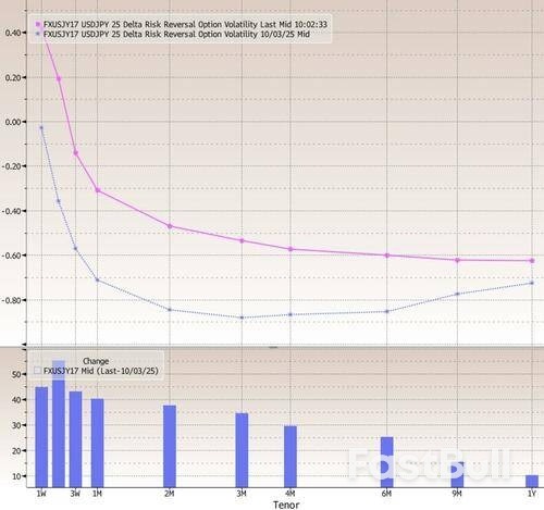 وكما كتب فاسيليس كارامانيس، استراتيجي بي بي جي إف إكس، فإن الصعود شبه المؤكد للمشرعة المؤيدة للتحفيز الاقتصادي ساناي تاكايتشي إلى منصب رئيسة الوزراء القادمة لليابان فاجأ المتداولين، وتظهر الخيارات اندفاعاً نحو امتلاك التعرض السلبي للين، على الرغم من انخفاضه الحاد بالفعل والذي أرسله إلى أدنى مستوى له منذ أوائل أغسطس/آب، وقبل ذلك، منذ فبراير/شباط.
