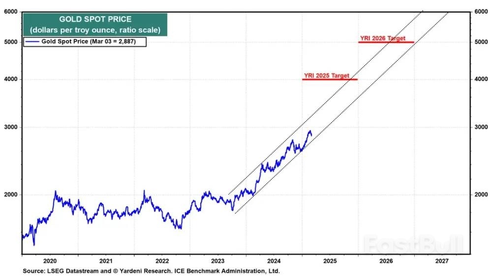 في غضون ذلك، ظل ارتفاع سعر الذهب ثابتًا بشكل ملحوظ منذ أواخر عام ٢٠٢٣ (الرسم البياني). وكان التراجع الأخير معتدلًا جدًا حتى الآن. نستهدف (ولا نعد) سعرًا للذهب يبلغ ٤٠٠٠ دولار للأونصة بنهاية هذا العام و٥٠٠٠ دولار بنهاية عام ٢٠٢٦.