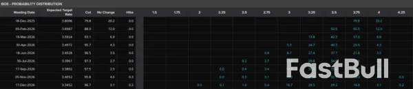 من المتوقع أن يُعزز ضعف الناتج المحلي الإجمالي توقعات خفض أسعار الفائدة من قِبَل بنك إنجلترا في ديسمبر. وكما ترون، تشير أحدث التسعيرات إلى احتمال بنسبة 75% لخفض سعر الفائدة بمقدار 25 نقطة أساس.