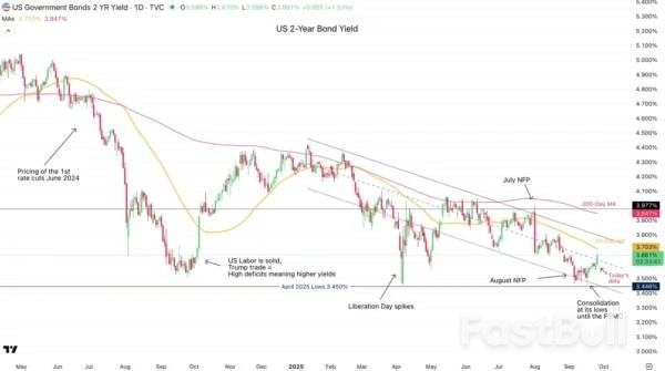 لقد رصدنا منطقة رفض تشكلت منذ اجتماع اللجنة الفيدرالية للسوق المفتوحة عند مستوى 3.50% تقريبًا، مع ارتفاع عائد السندات لأجل عامين الآن فوق 10 نقاط أساس منذ اجتماع اللجنة الفيدرالية للسوق المفتوحة يوم الأربعاء. وفي ظل الفشل في اختراق أدنى مستويات يوم التحرير (3.45%)، ترسم صورة أكثر إيجابية من الجولة الأخيرة من البيانات الأمريكية التي تقلل من القلق بشأن سوق العمل، وبالتالي تقل الحاجة إلى خفض أسعار الفائدة. ويصبح الدولار أكثر جاذبية مع ارتفاع العائدات، لكن القصة أكثر تعقيدًا. وقد تخشى الأسواق من أن العجز الشديد لا يزال سيمنع تباطؤ الاقتصاد. ولهذا السبب يواصل متحدثو بنك الاحتياطي الفيدرالي الإشارة إلى أن اتخاذ القرارات يعتمد على البيانات، مما يوفر بدوره المزيد من الثقة في استقلال بنك الاحتياطي الفيدرالي، وبالتالي زيادة الطلب على الدولار.