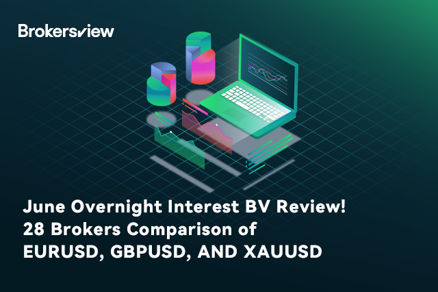 June Overnight Interest BV Review! 28 Brokers Comparison of EURUSD, GBPUSD, AND XAUUSD