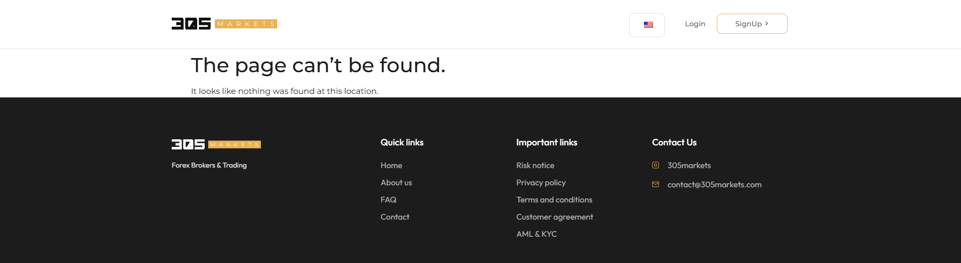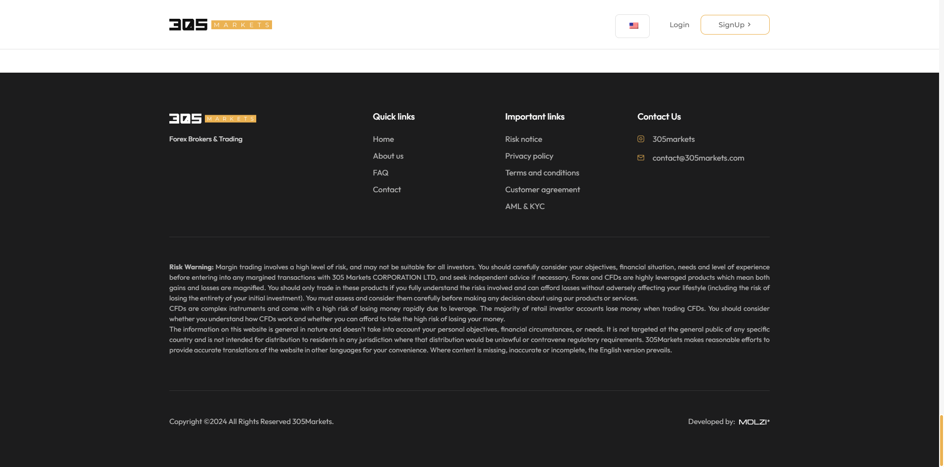 305Markets claims to be operated by 305 Markets CORPORATION LTD, but provides no verifiable details regarding its registration address, legal jurisdiction, or even contact information, which makes it difficult for us to verify its regulatory status.