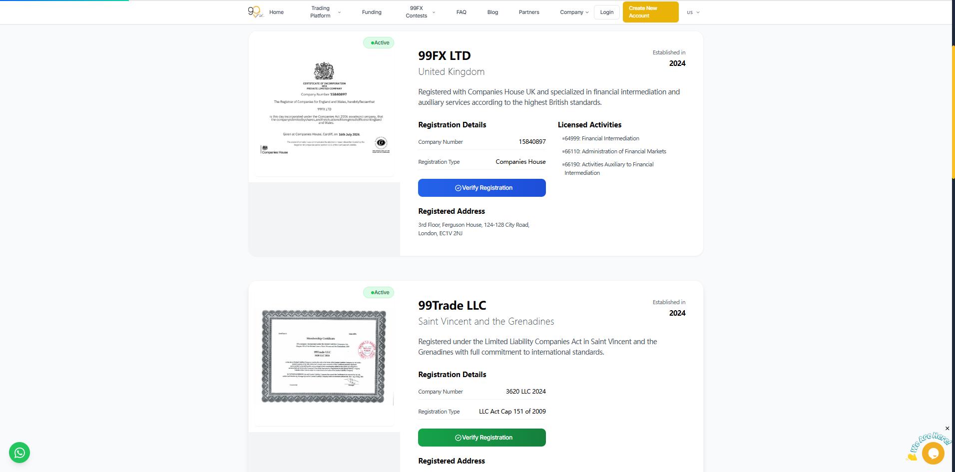 99FX claims that its entity is registered in the UK and displays several certificates, our investigation confirms that none of these documents constitute a valid license from a recognized financial regulatory authority. We also found no record of 99FX Ltd being authorized or regulated by the UK's Financial Conduct Authority (FCA).