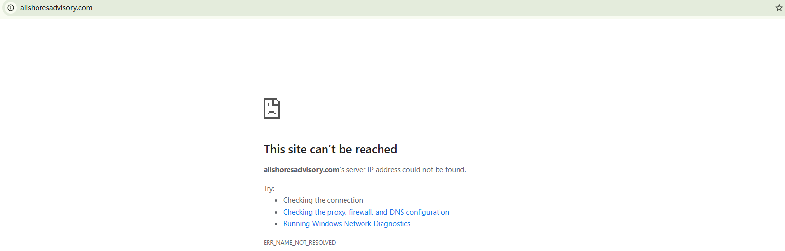 The previous website of ALL SHORES ADVISORY, allshoresadvisory.com, was detected by the Financial Conduct Authority (FCA) and marked as a potential scam. This website has since been deactivated. The FCA has found that ALL SHORES ADVISORY has relocated their business to a new domain, allshadv.com, and has updated the warning against this unauthorized firm. Investors should be informed and stay vigilant. https://www.fca.org.uk/news/warnings/all-shores-advisory
