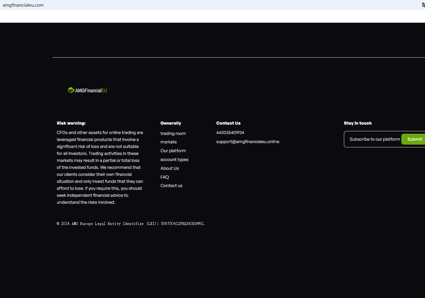In essence, AMGfinancialEU is not regulated by any governing body. Entrusting it with investors' funds is highly risky, as there are no legal protections in place to safeguard the funds. AMGfinancialEU appears to be a scam.