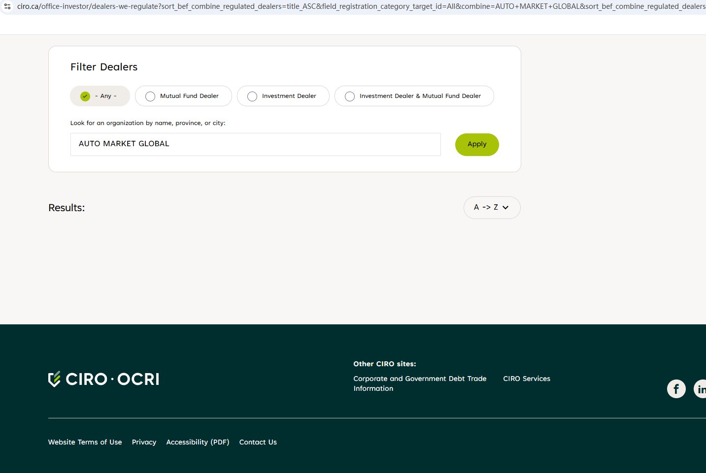 In essence, AUTO MARKET GLOBAL is not regulated by any governing body. Entrusting it with investors' funds is highly risky, as there are no legal protections in place to safeguard the funds.