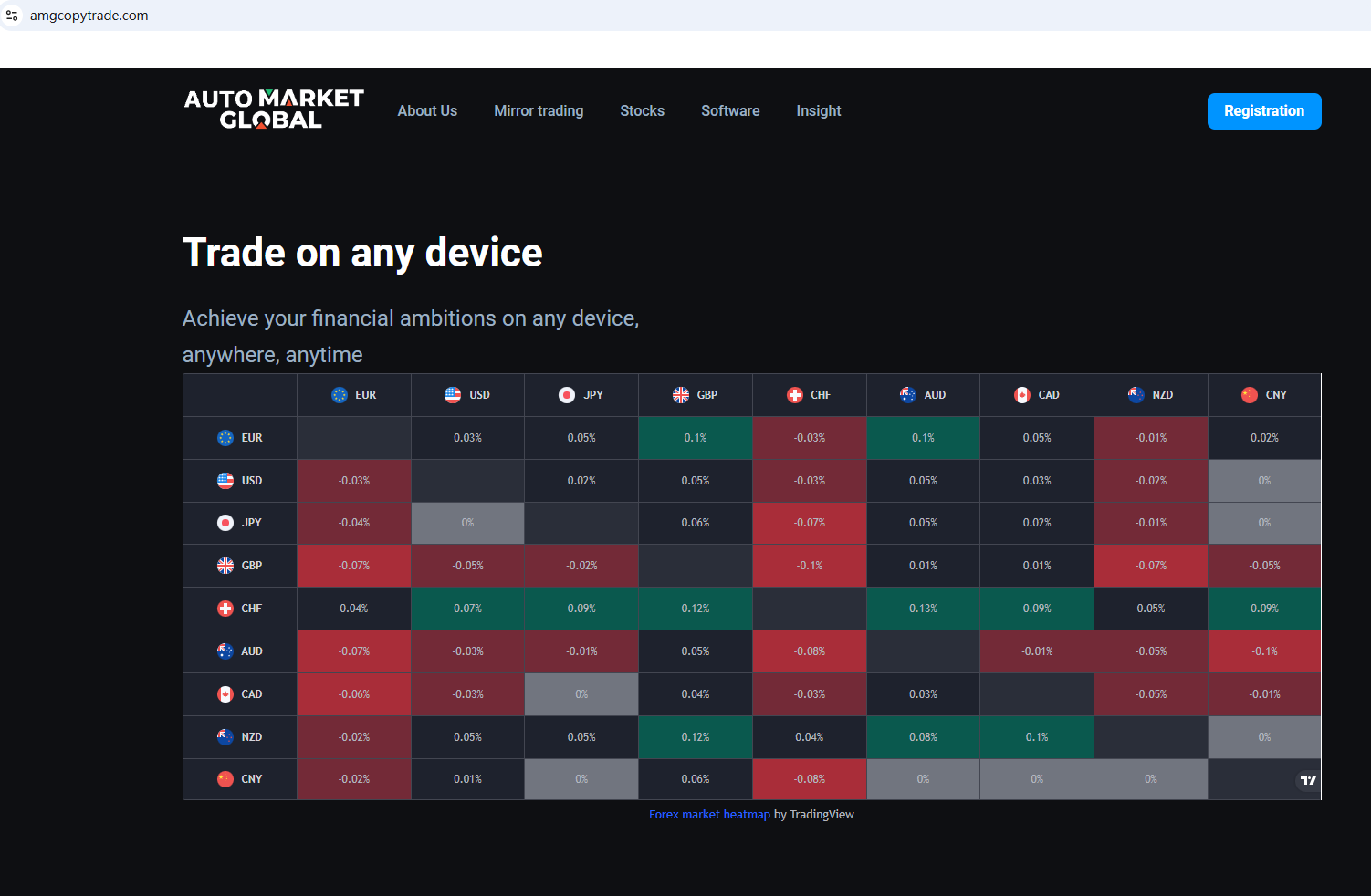 According to its website, it has offices in the United States, the United Kingdom, and Canada. Upon investigation, no matching information was found in the National Futures Association (NFA) and Investment Industry Regulatory Organization of Canada (IIROC). In addition, we found that the United Kingdom Financial Conduct Authority (FCA) issued a warning against AUTO MARKET GLOBAL, believing this company might be providing financial services or products without authorisation in the UK.