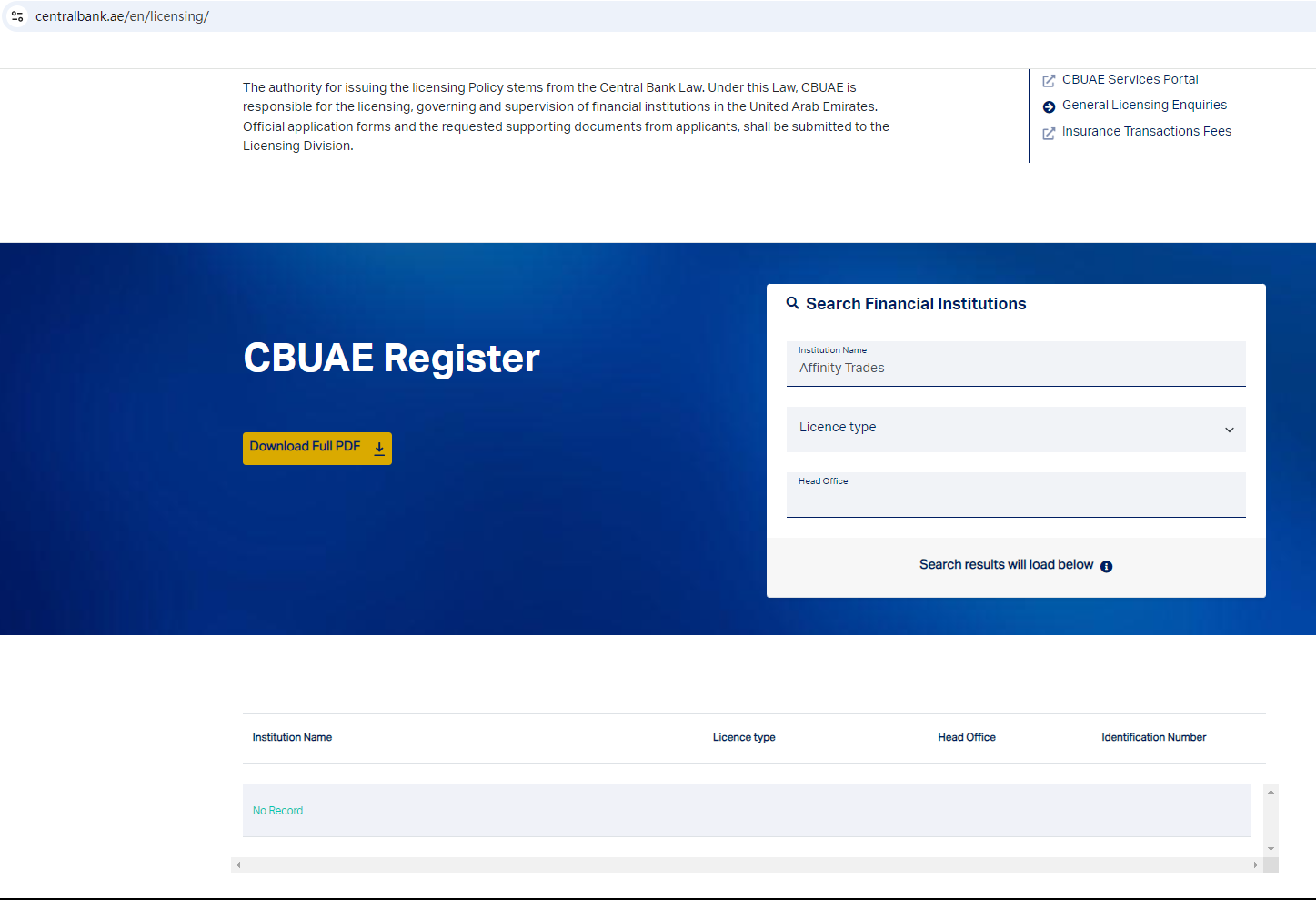 Affinity Trades claims to be registered in St. Lucia, promoting this registration as proof of its legitimacy. However, forex trading activities are not licensed in St. Lucia. In addition, it is located in Dubai. Upon investigation, no matching information was found in the Securities and Commodities Authority (SCA), DuBai Financial Services Authority (DFSA), and Central Bank of U.A.E. (CBUAE).