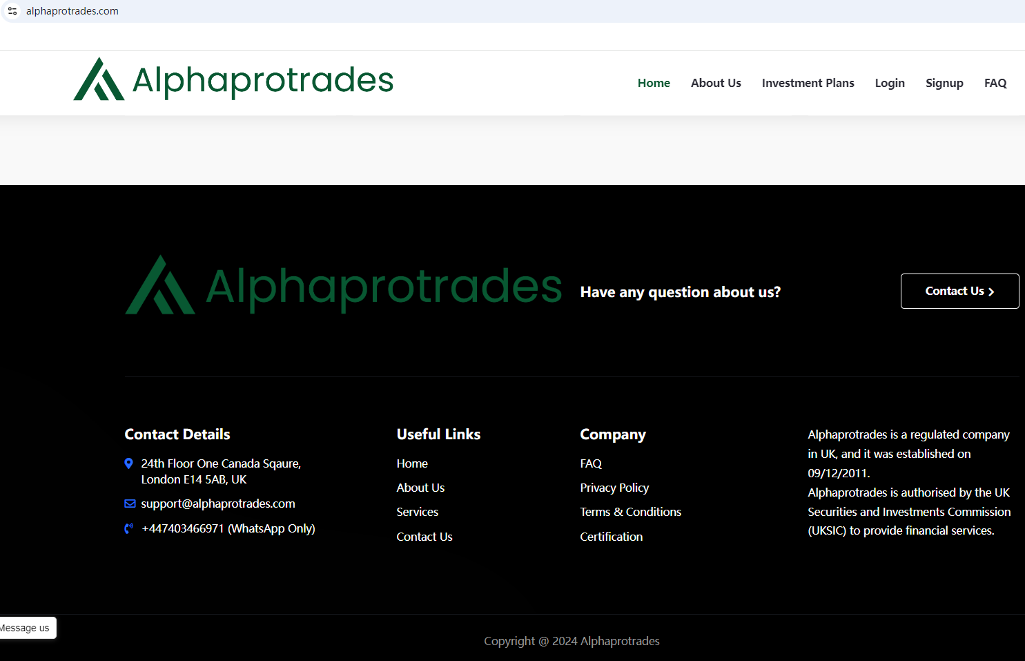 According to its website, it claims to be a regulated entity and claims to be regulated in the UK. Upon investigation, no matching information was found in the Financial Conduct Authority (FCA).In essence, Alphaprotrades is not regulated by any governing body. Entrusting it with investors' funds is highly risky, as there are no legal protections in place to safeguard the funds.Alphaprotrades appears to be a scam.