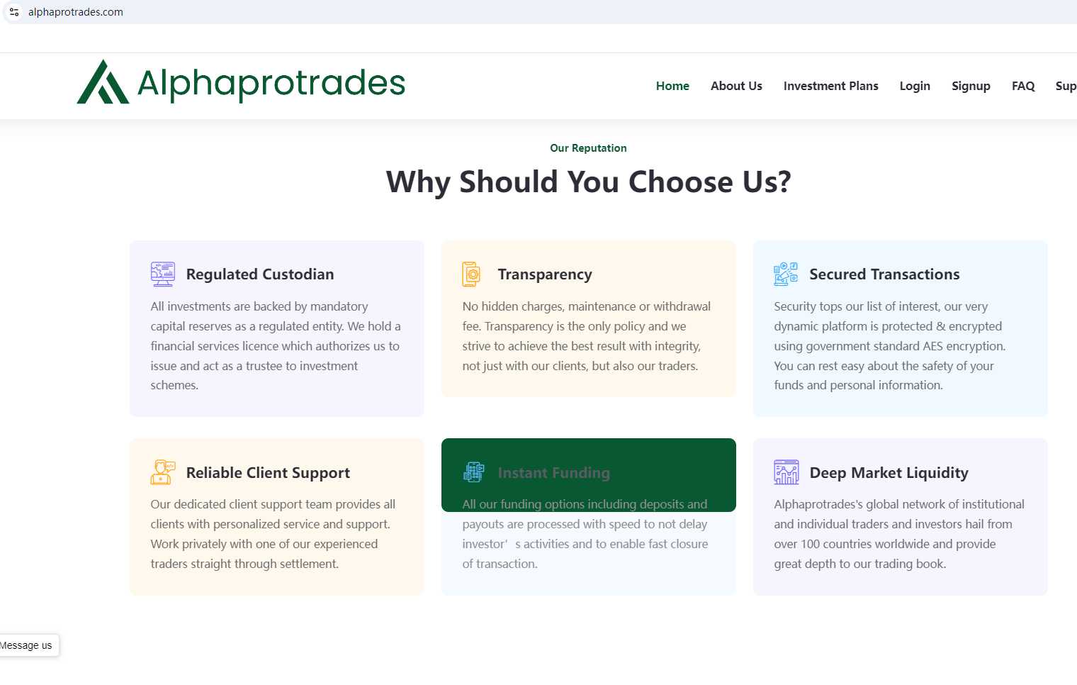 In essence, Alphaprotrades is not regulated by any governing body. Entrusting it with investors' funds is highly risky, as there are no legal protections in place to safeguard the funds.