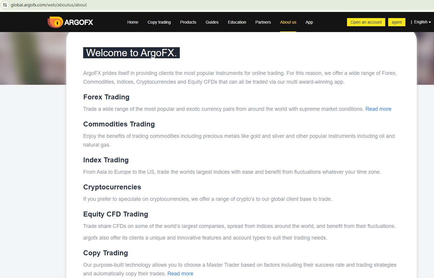 ArgoFX presents itself as a trading platform offering access to a variety of trading assets, including forex pairs, commodities, and indices. However, it is an unregulated broker.
