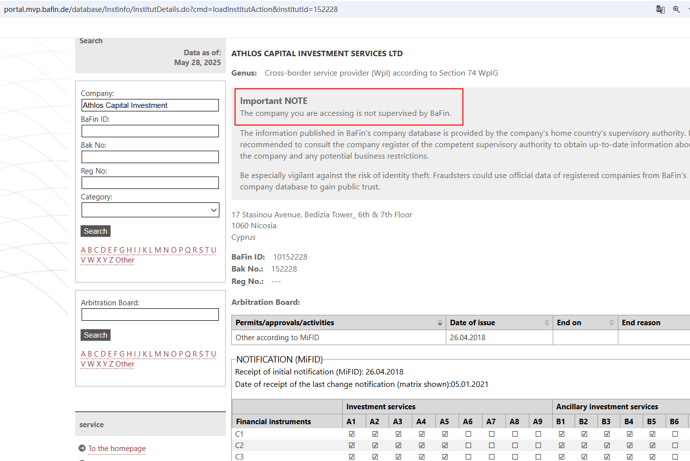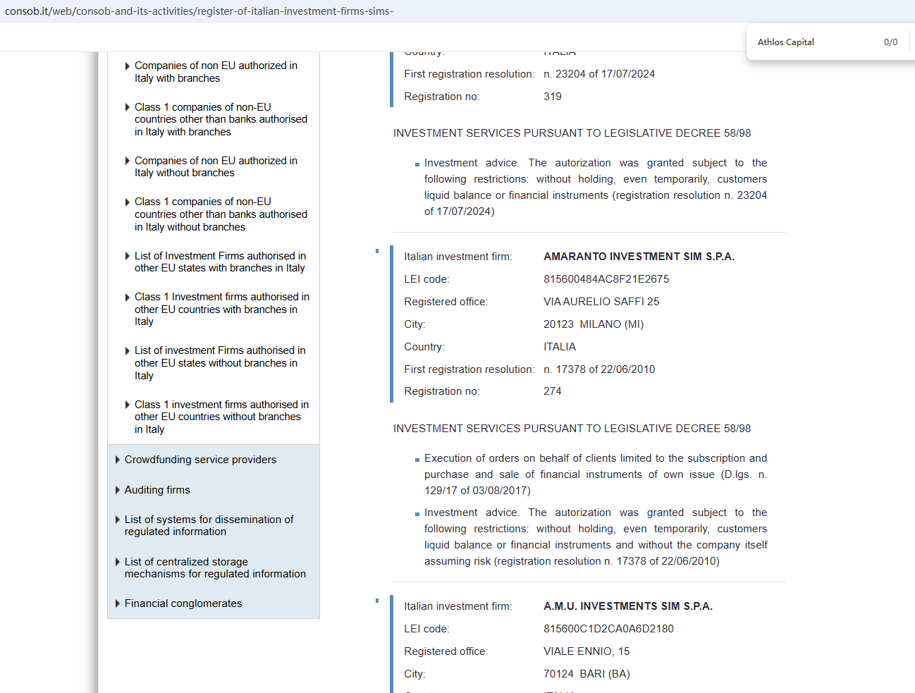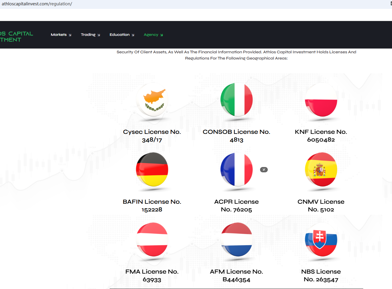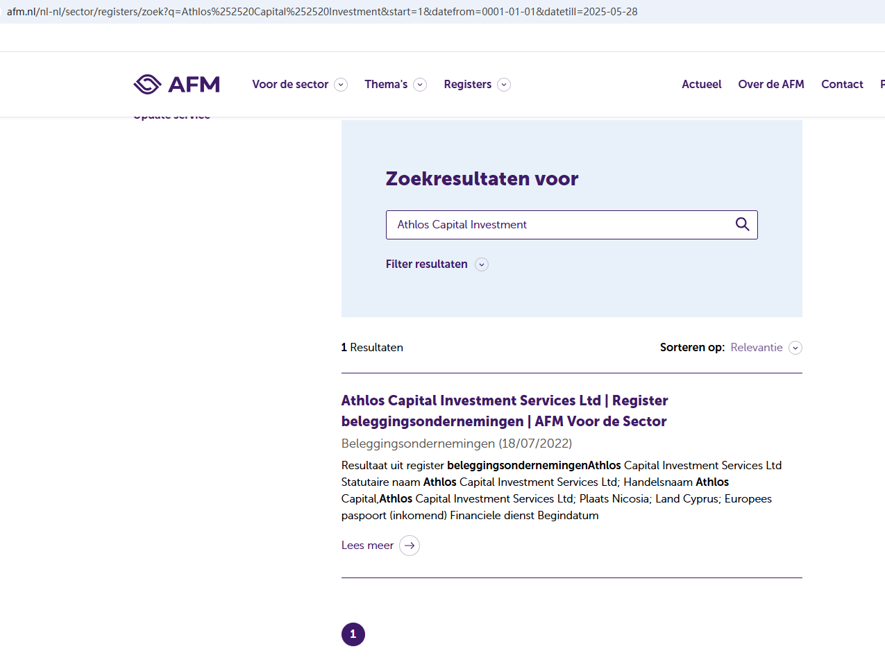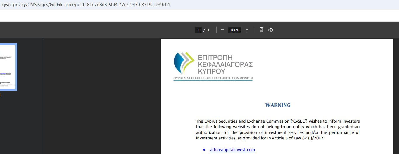 In addition, the Cyprus Securities and Exchange Commission (CySEC) issued a warning against Athlos Capital Investment, believing this company might be providing financial services or products without authorisation.
