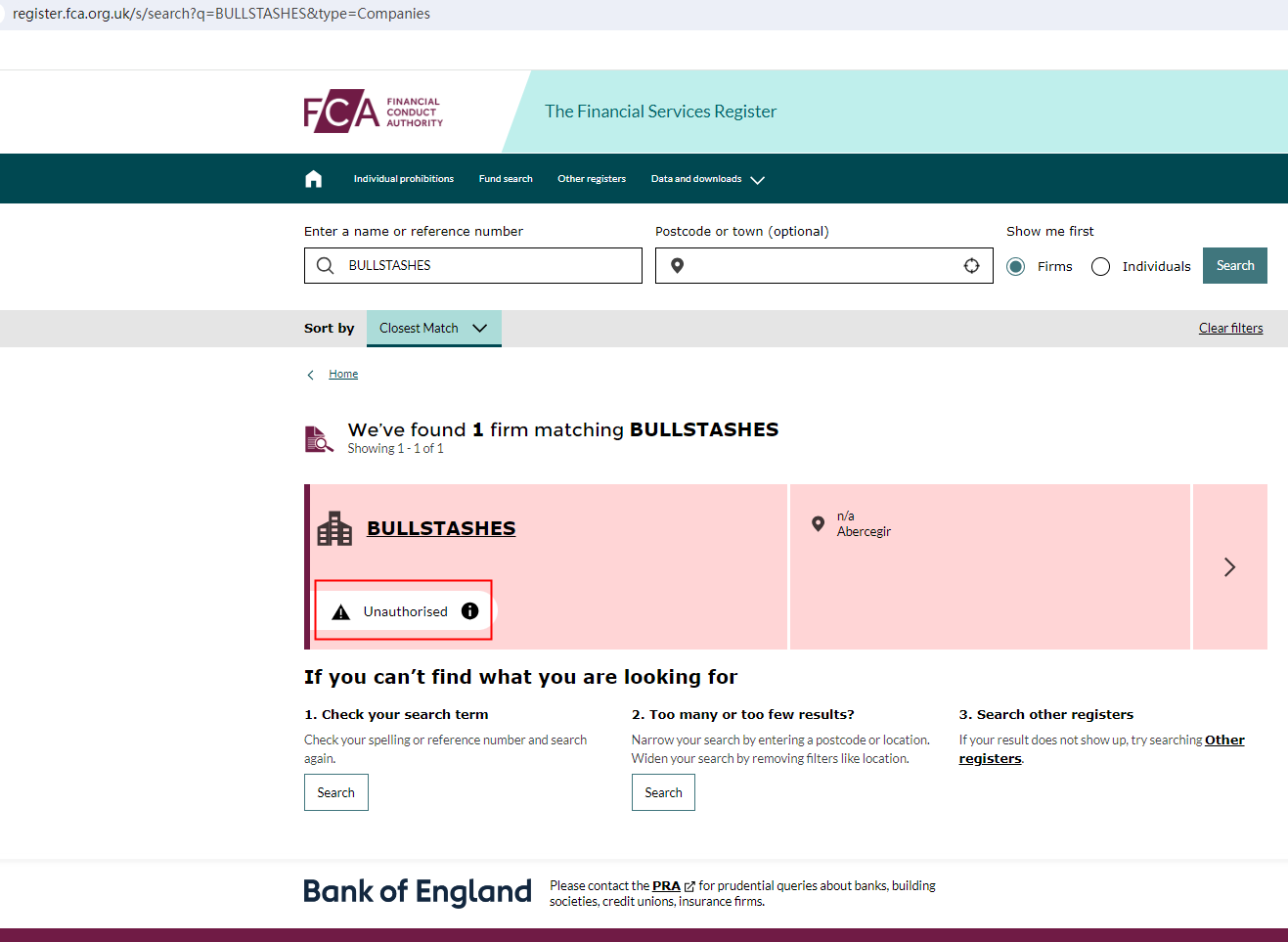 In addition, it is located in the UK, however, upon investigation, it was found that its registration status on the FCA was "Unauthorised".