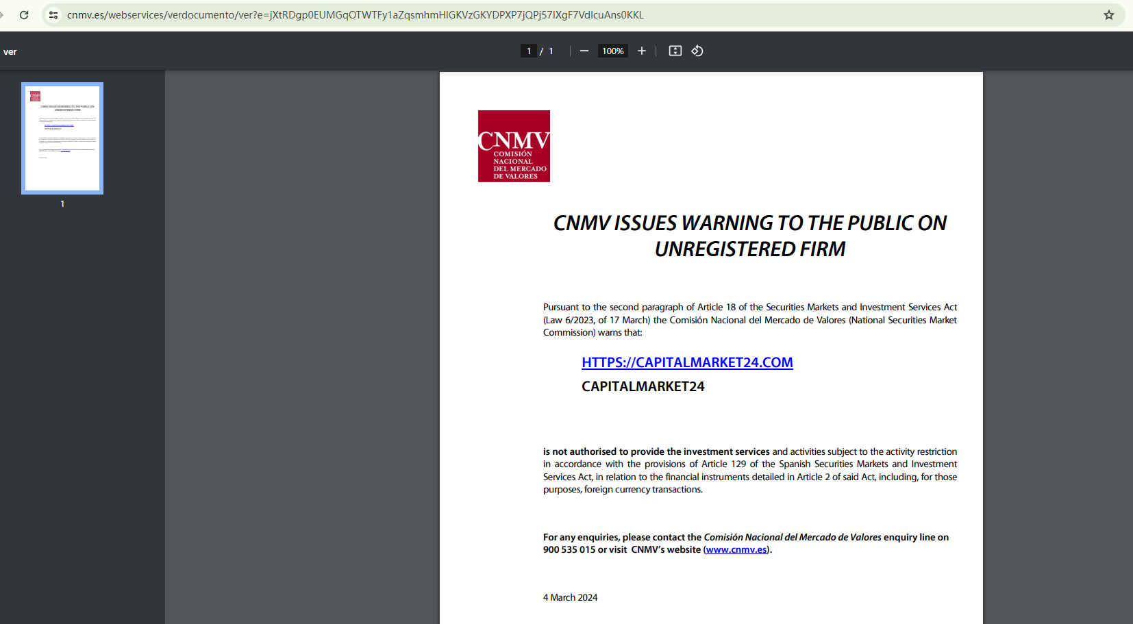 What's more, the Comisión Nacional del Mercado de Valores (CNMV) has added CAPITALMARKET24 to its warning list for providing investment services without authorization. This further undermines this platform's credibility.