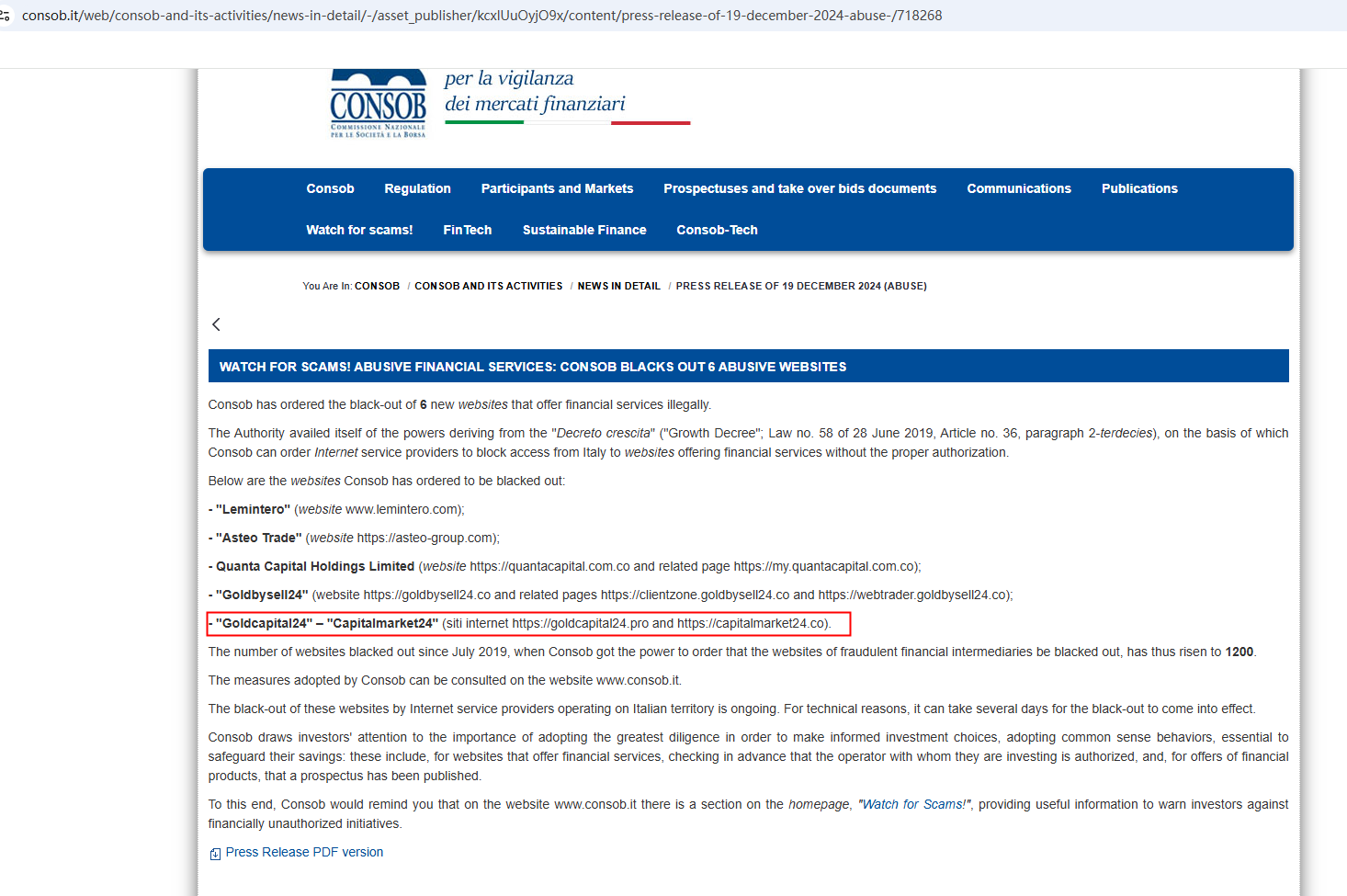 Unknown operators provide financial services through the website capitalmarket24.com without the required authorization. There are no indications that it is registered with any pertinent financial regulator. What's more, the Comisión Nacional del Mercado de Valores (CNMV) has added CAPITALMARKET24 to its warning list for providing investment services without authorization. This further undermines this platform's credibility.In essence, CAPITALMARKET24 is not regulated by any governing body. Entrusting it with investors' funds is highly risky, as there are no legal protections in place to safeguard the funds.CAPITALMARKET24 appears to be a scam.