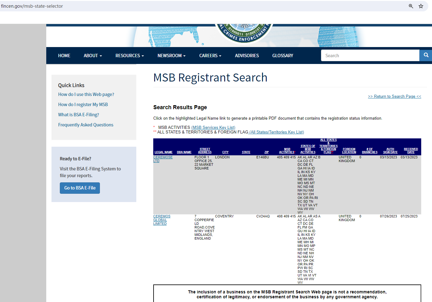 In addition, the United Kingdom Financial Conduct Authority (UK FCA) issued a warning that CEREMOS was providing financial services or products in the UK without authorisation.