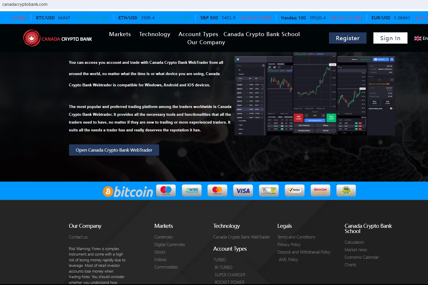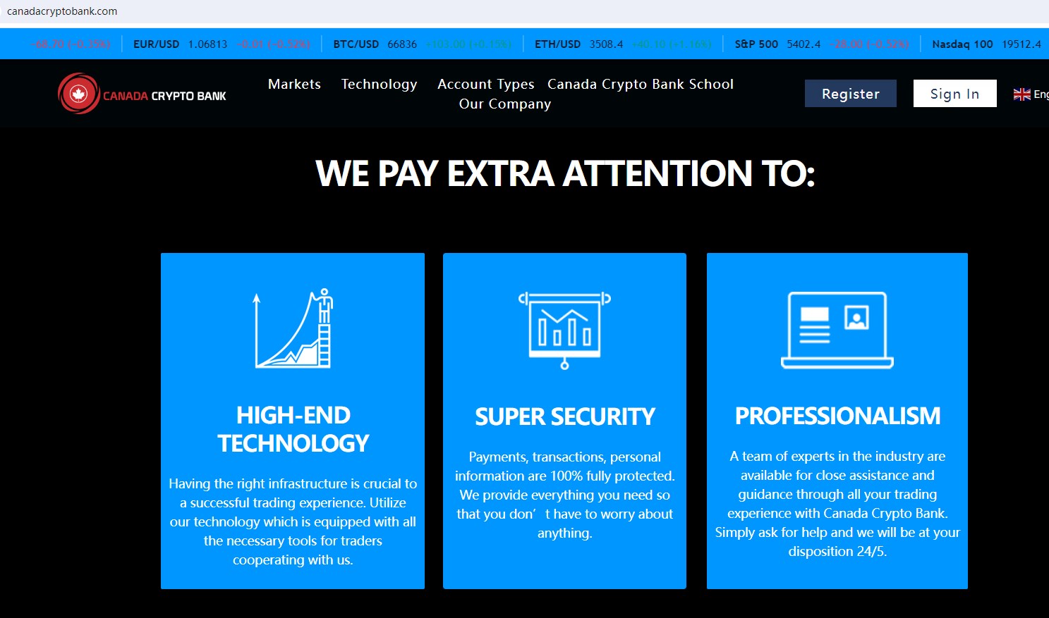 Canada Crypto Bank claims to be a broker located in Canada, offering wide range of financial services, including Currencies, Digital Currencies, Stocks, Indices, Commodities and more instruments in global markets. But it lacks crucial regulatory information. A company that offers financial services must have a financia license in the country where it is located.