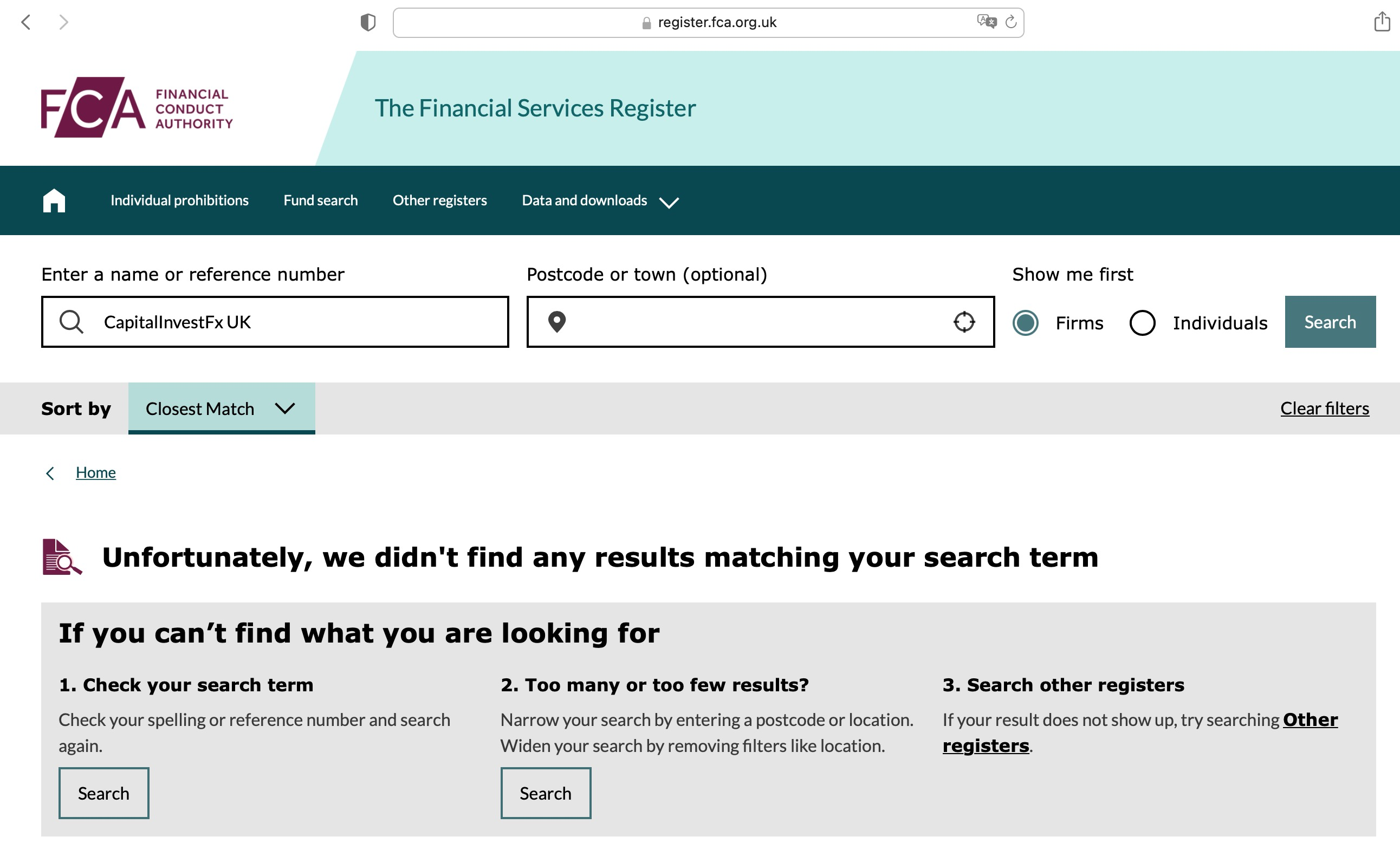 CapitalInvestFx claims to be regulated by the Cyprus Securities and Exchange Commission (CySEC) (License Number 124/10), the Belize Financial Services Commission (Belize FSC) under license number IFSC/60/354/TS/18, the UK Financial Conduct Authority (FCA) (Reference number: 705428) and the Australian Securities and Investments Commission (ASIC) (number: 443670).We searched these regulators by company number but found a mismatch for one company, when we searched by company name there were no results.CapitalInvestFx claims to be operated by Safe Side Trading LTD, which is registered in Saint Vincent and the Grenadines.We searched the Financial Services Authority (FSA) of Saint Vincent and the Grenadines but found no matching results.The truth is that CapitalInvestFx is not under valid regulation by any regulators to do forex. Investors' funds in this broker are unsafe and cannot be protected by any law.CapitalInvestFx is a scam.