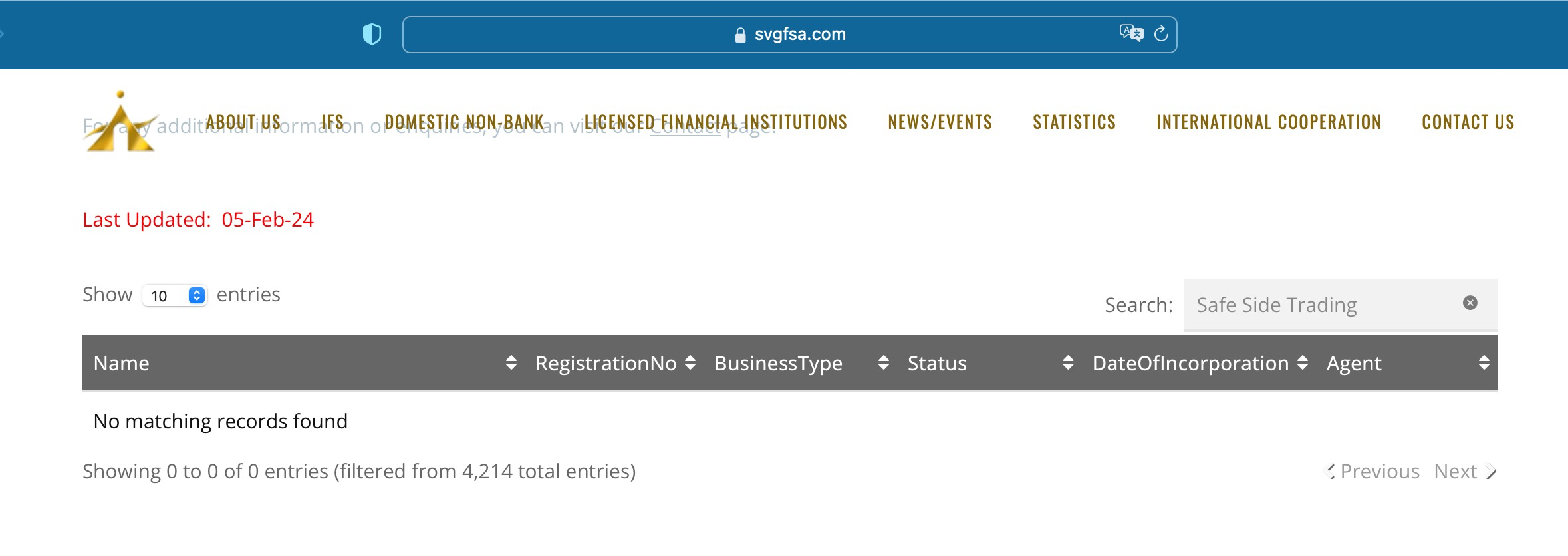 We searched the Financial Services Authority (FSA) of Saint Vincent and the Grenadines but found no matching results.