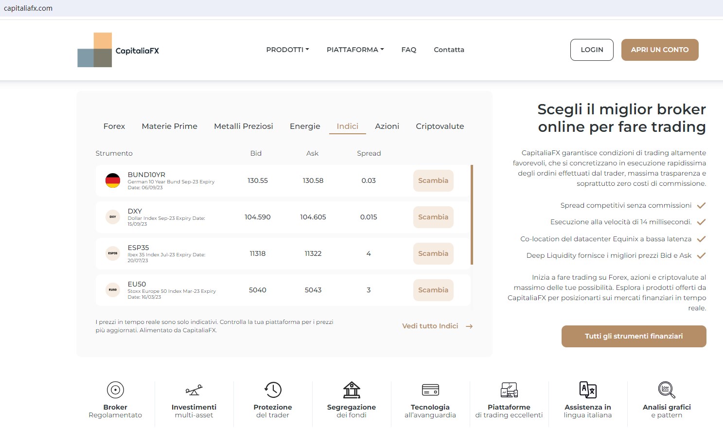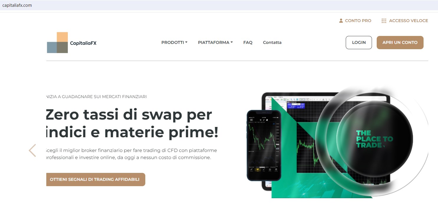 CapitaliaFX claims to be authorized and regulated by the Malta Financial Services Authority (MFSA), with license number: IS/79767, and provides Wide range of financial services, including Forex, Commodities, Metals, Energy, Indexes, and Cryptocurrencies and more instruments in global markets.