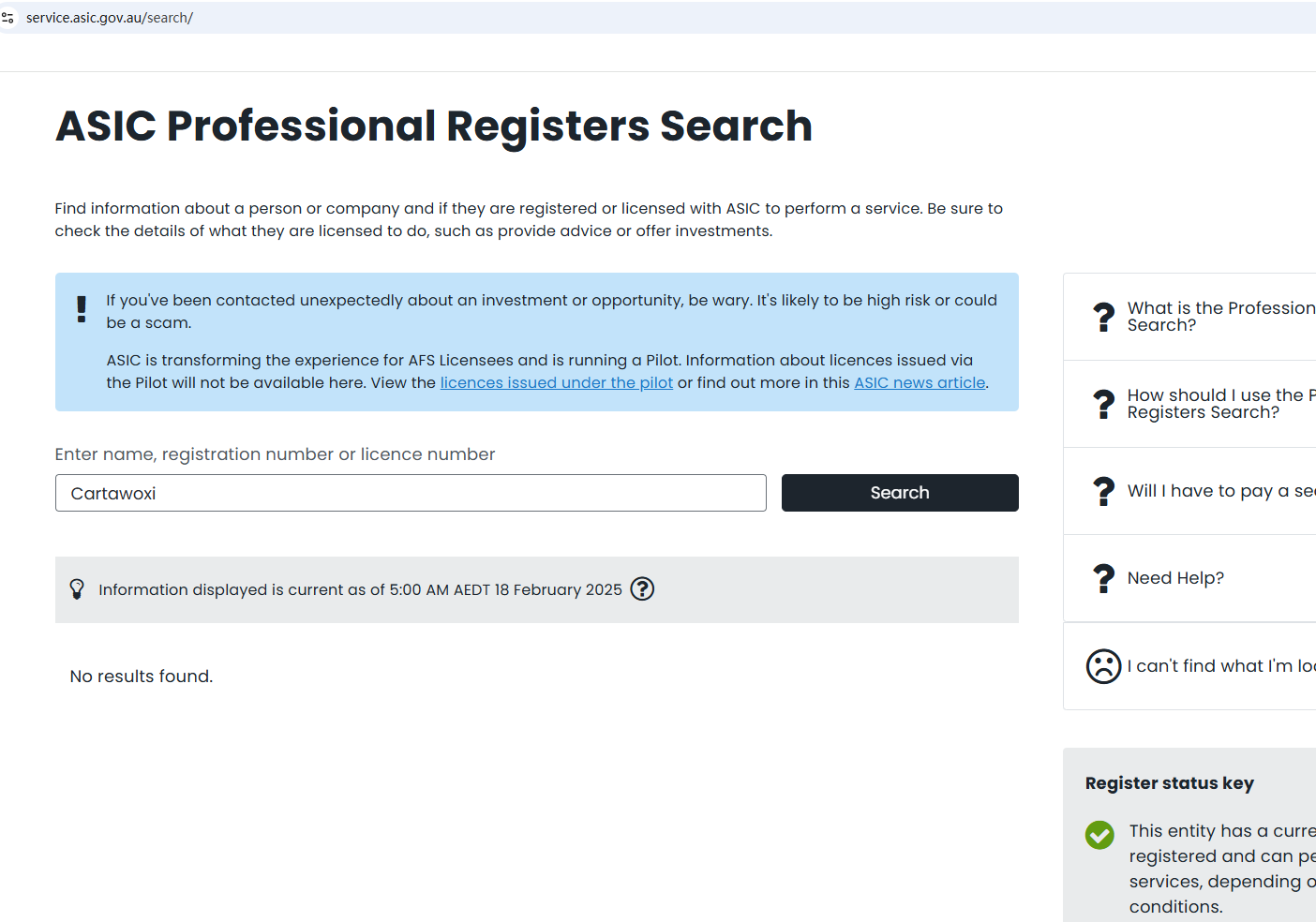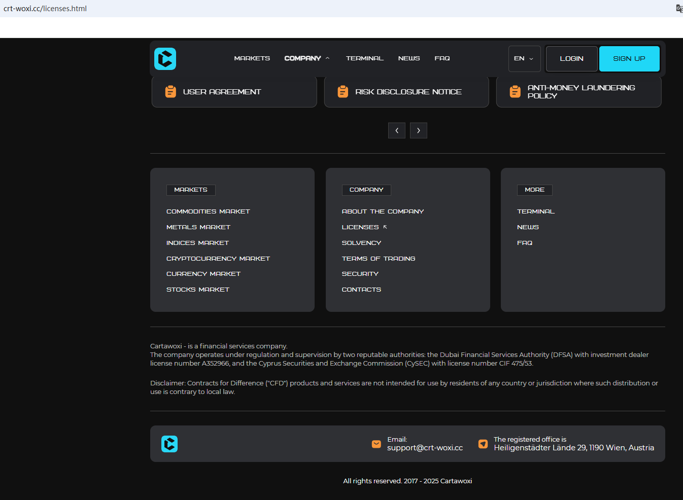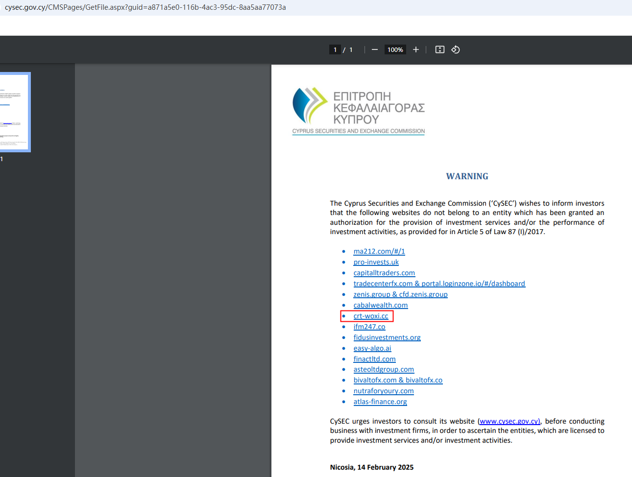 In addition, we found that the Cyprus Securities and Exchange Commission (CySEC) warned consumers about the services offered by the company Cartawoxi, which is offering financial and investment services without the required authorization.