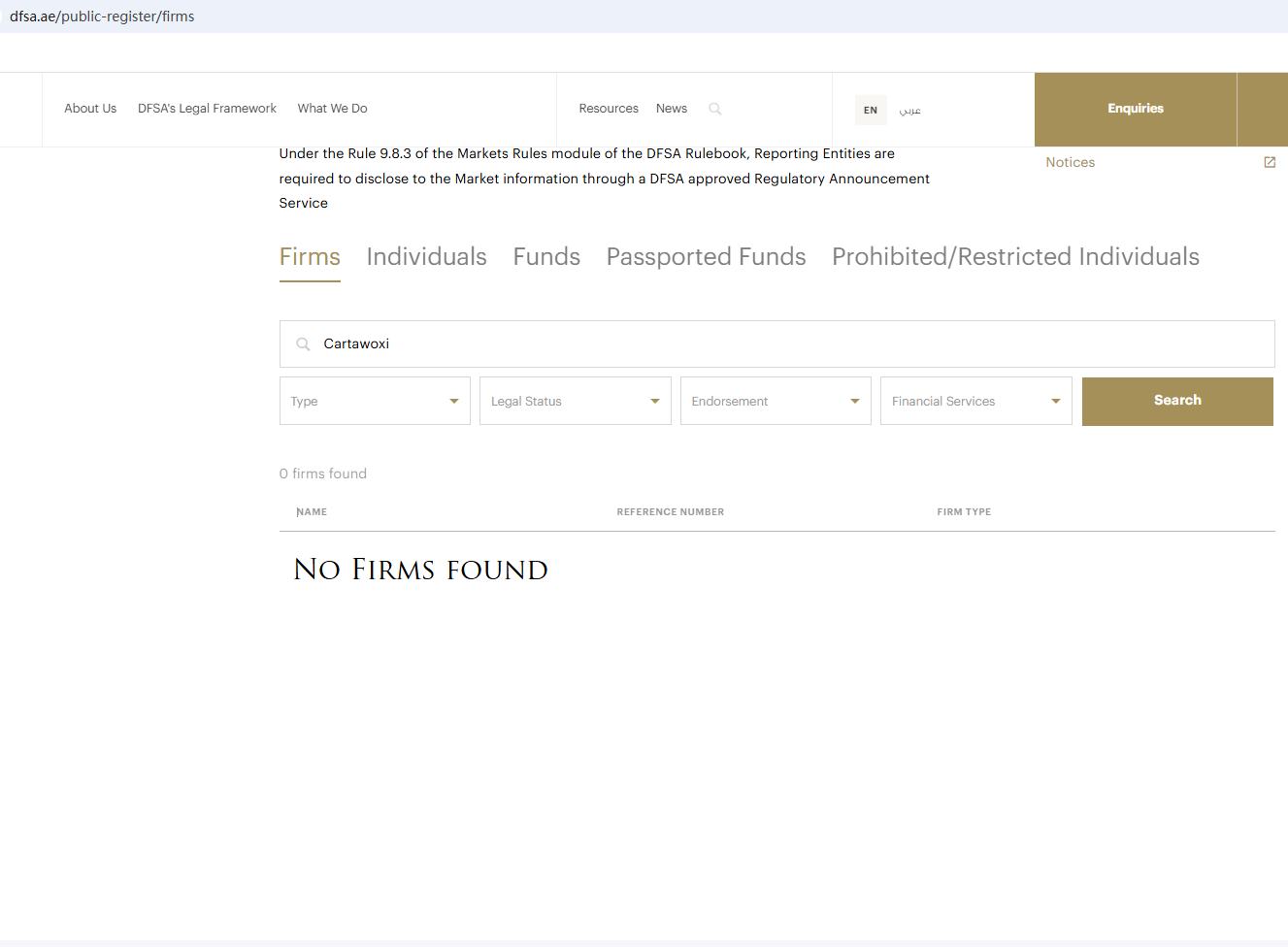 In essence, Cartawoxi is not regulated by any governing body. Entrusting it with investors' funds is highly risky, as there are no legal protections in place to safeguard the funds.