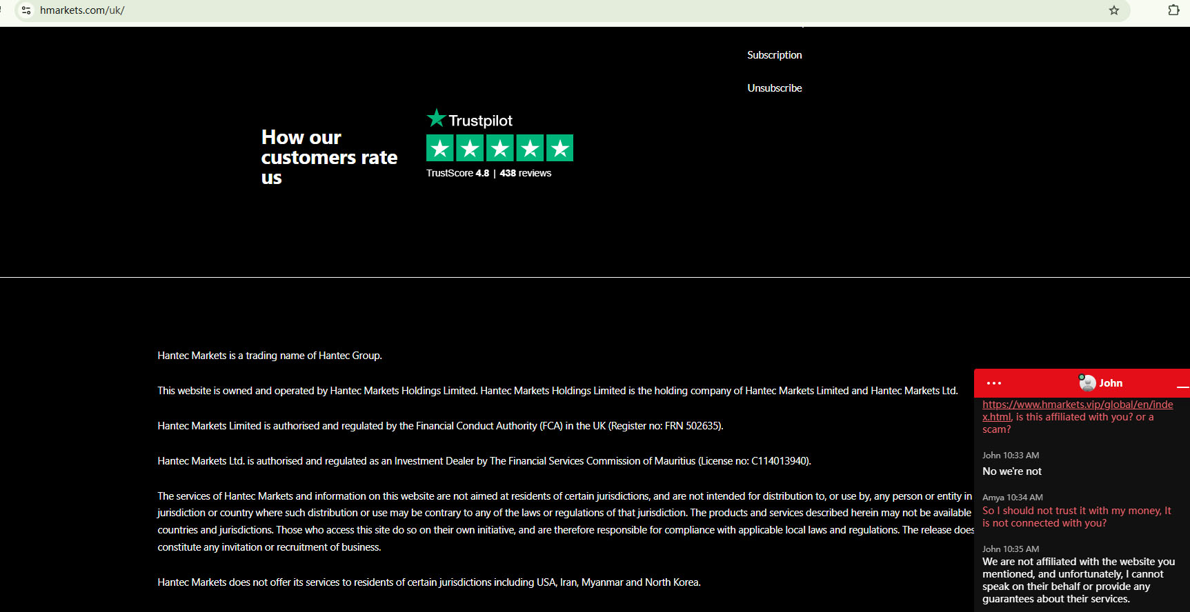 Thank you for bringing this matter to our attention. The domain in question, hmarkets.vip, is indeed involved in identity fraud. This platform, while masquerading as Hantec Markets, has copied the graphic designs and content of another known broker, IC Markets. Our investigation indicates that hmarkets.vip has only recently emerged. Your report is crucial in helping unsuspecting investors avoid this scam. We have also contacted Hantec Markets to confirm that they bear no responsibility for hmarkets.vip.