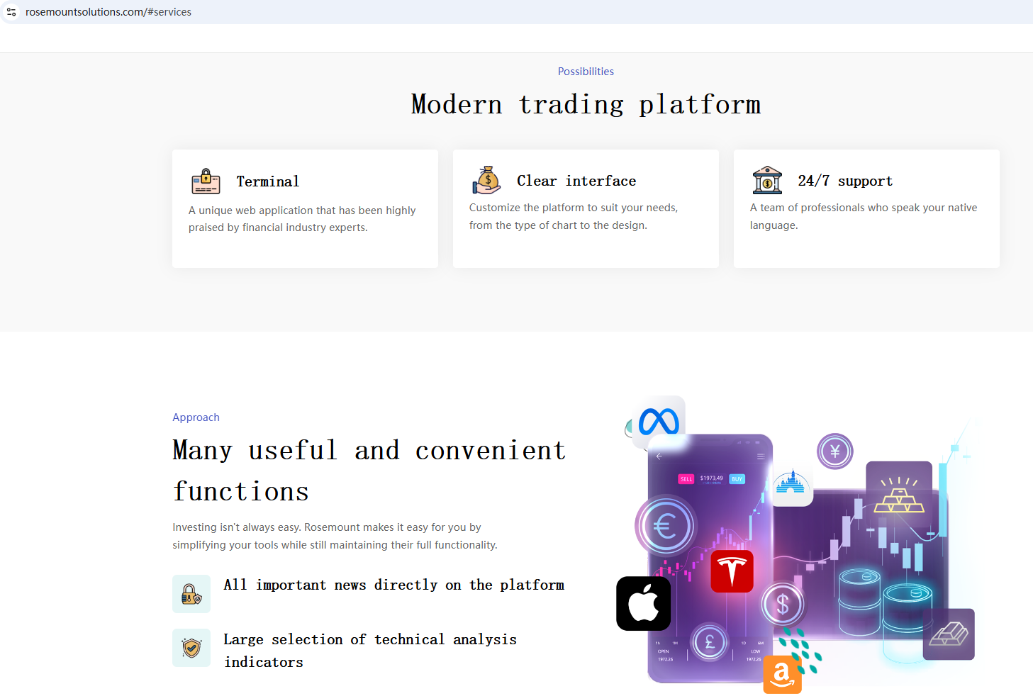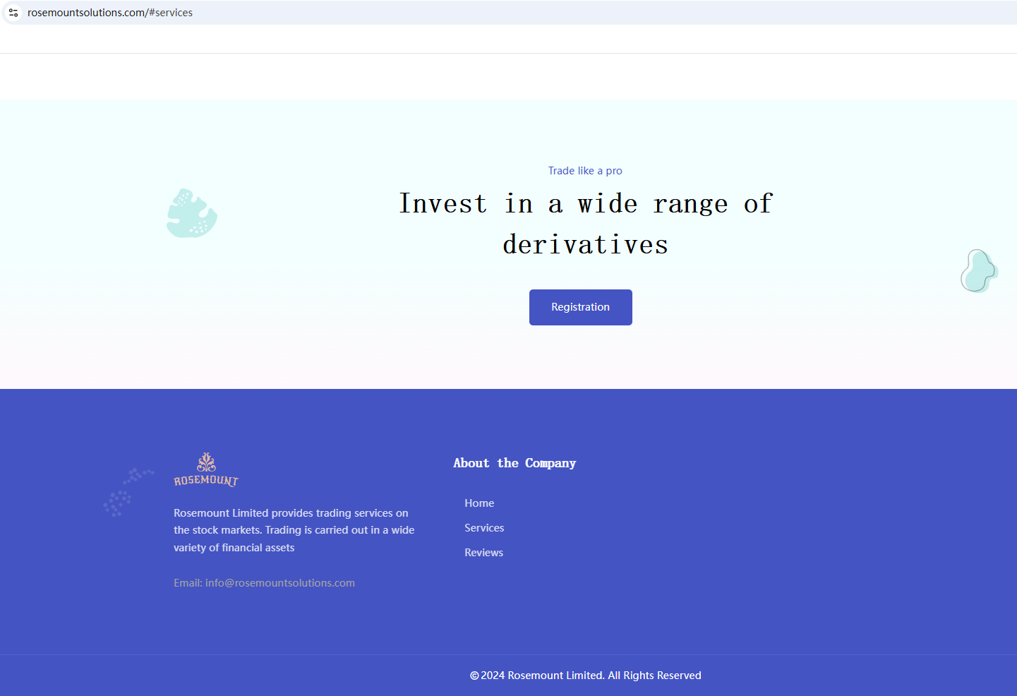 According to its website, it claims to be a reliable broker, but does not display any valid information on the website for inquiry. In addition, the Financial Conduct Authority (FCA) issued a warning against rosemountsolutions.com, identifying this company as a clone of an FCA-authorized firm.