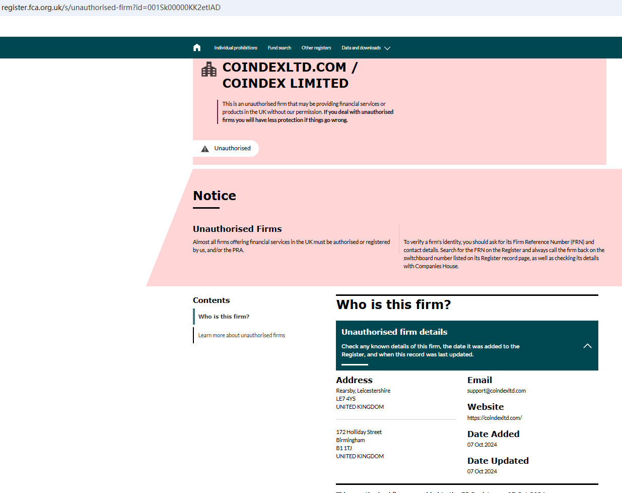 According to its website, it claims to be a compliant broker and is registered in the UK. However, upon investigation, we found that the FCA has clearly stated that it is not regulated by it. In addition, the National Securities Market Commission (CNMV) issued a warning against Coindex, believing this company might be providing financial services or products without proper authorization.