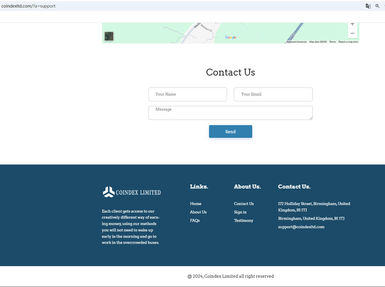 In essence, Coindex is not regulated by any governing body. Entrusting it with investors' funds is highly risky, as there are no legal protections in place to safeguard the funds. Coindex appears to be a scam.