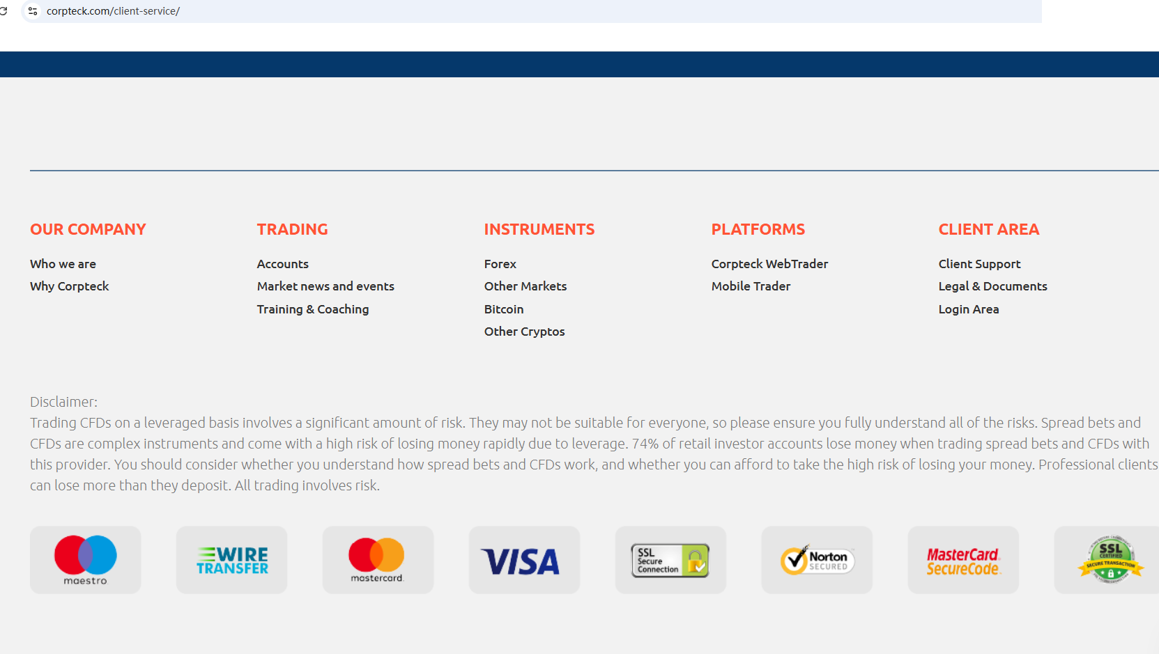 According to its website, it is located in the Switzerland. Upon investigation, we found that the Swiss Financial Market Supervisory Authority (FINMA) issued a warning against Corpteck, stating that this broker is not entered in its commercial register.