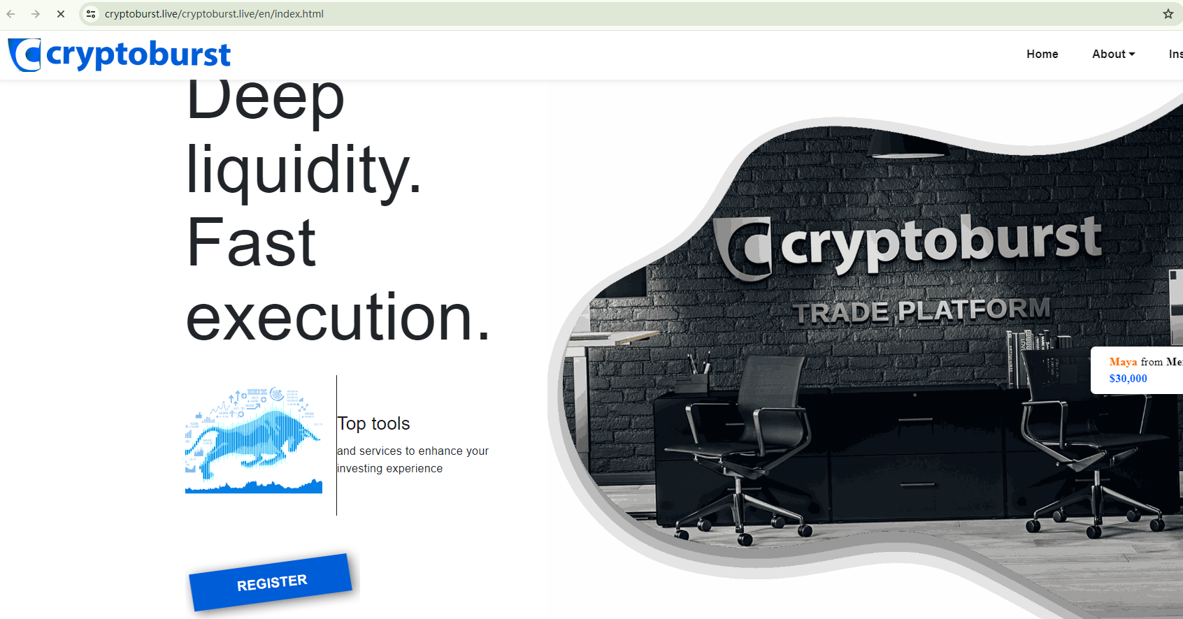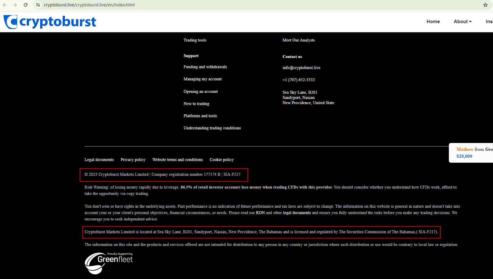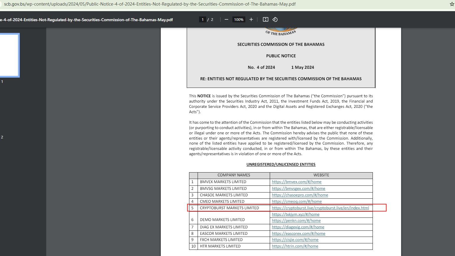 Cryptoburst, which claims to be registered with the Securities Commission of the Bahamas (SCB), has been added to the SCB's warning list, refuting such a claim. This is a significant indicator of a scam.