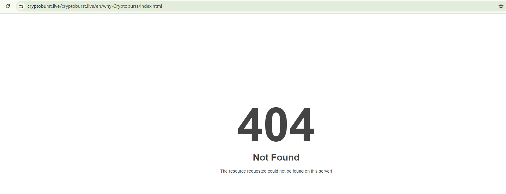 Furthermore, the link labeled "Why Cryptoburst" leads to a "404 Not Found" page, indicating issues with the company's resources and reliability.