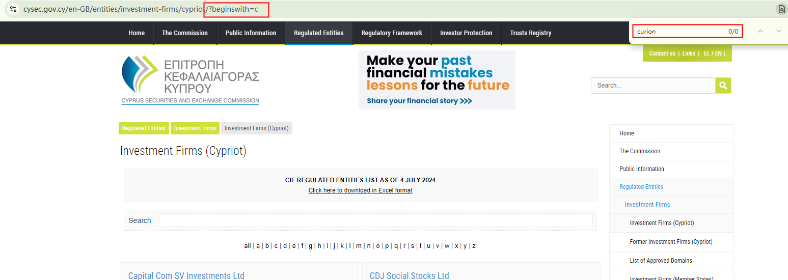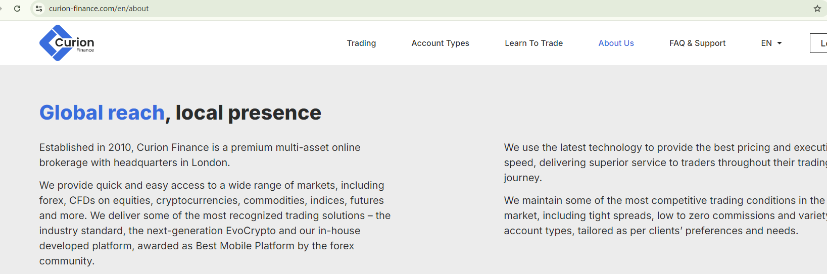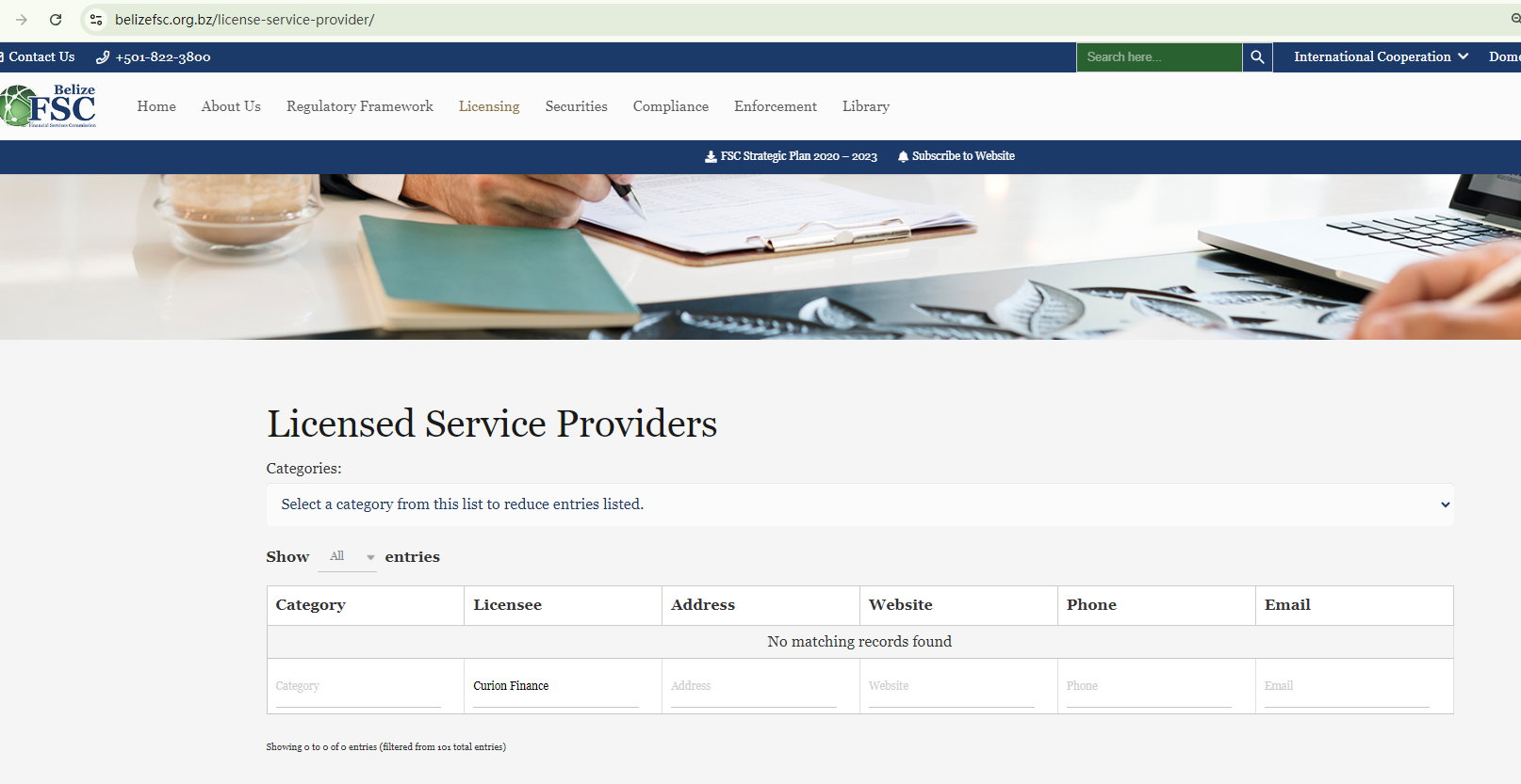 Curion Finance claims to be a regulated broker, but its regulatory statements are questionable. While it asserts regulation by the Cyprus Securities and Exchange Commission (CySEC) and the Belize Financial Services Commission (Belize FSC), we have not found corresponding records in the registers of these regulators.