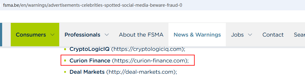 Curion Finance claims to be a regulated broker, but its regulatory statements are questionable. While it asserts regulation by the Cyprus Securities and Exchange Commission (CySEC) and the Belize Financial Services Commission (Belize FSC), we have not found corresponding records in the registers of these regulators.Despite claiming to have been established in 2010, the website is less than 5 months old. Additionally, the Comisión Nacional del Mercado de Valores (CNMV) has added Curion Finance to its warning list for providing investment services without authorization.In essence, Curion Finance is not regulated by any governing body. Entrusting it with investors' funds is highly risky, as there are no legal protections in place to safeguard the funds.Curion Finance appears to be a scam.