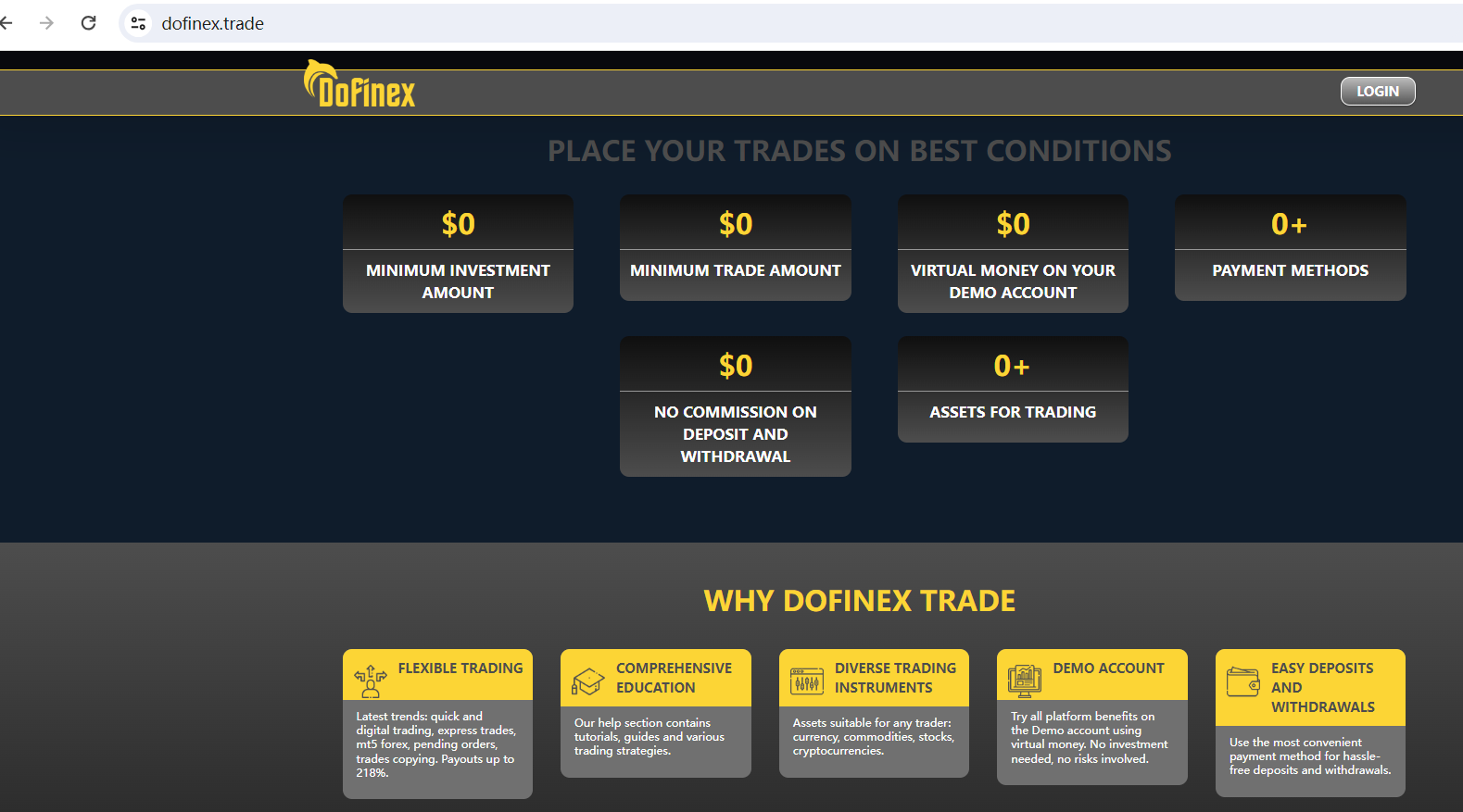 The design of Dofinex's website is poor. It currently lacks essential content, such as comprehensive product descriptions, regulatory details, and legal disclaimers. This absence of transparency could potentially raise concerns about the legitimacy of the site's operations.In essence, Dofinex is not regulated by any governing body. Entrusting it with investors' funds is highly risky, as there are no legal protections in place to safeguard the funds.Dofinex appears to be a scam.
